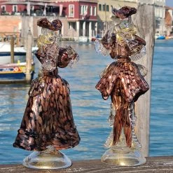 Couple Goldoni Venetian Figurines – Blue And Red – Gold 24kt Decoration – Original Murano Glass OMG