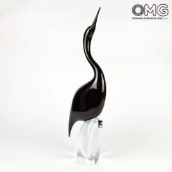 Black Heron Male – Glass Sculpture – Original Murano Glass OMG