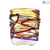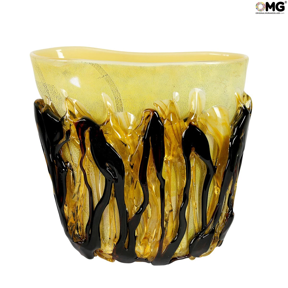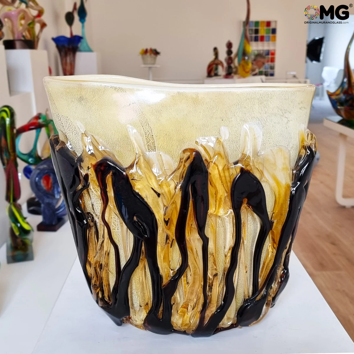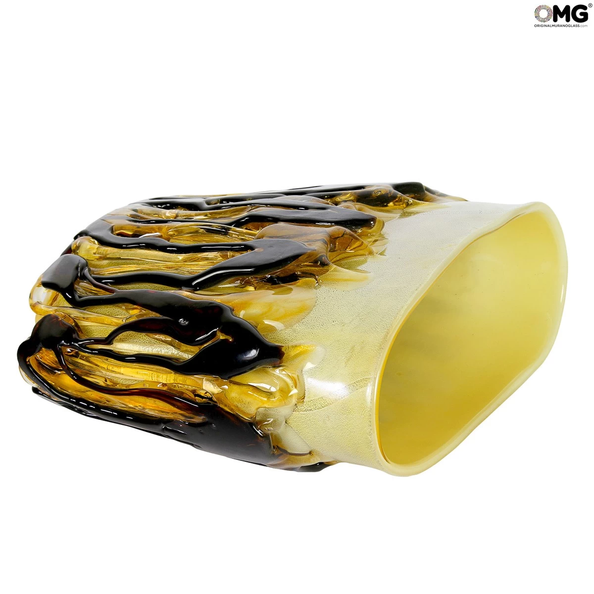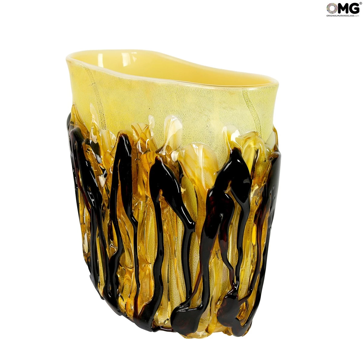 The dropping black colors of this blown vase are the main elements that give it its particular aura, as thousand flames. In this way, an object of common use becomes an object of value useful for furnishing an imperial style table or wooden furniture.