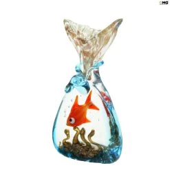 Beautiful aquarium glass sculpture, made with “sommerso” technique. This art work is handmade with a very difficult technique: first the glass master makes the little fishes and after he melts them into a glass stone at high temperature.