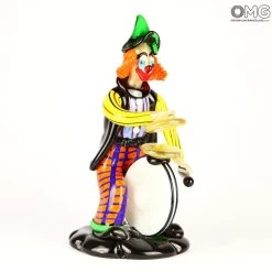Exclusive clown figurines of musician players handmade with the technique of warm glass modellation and multicolored  glass decorations. Gold 24 carats details. Perfectly proportioned details, exclusive piece of artglass for home decor made in Italy for collectors. Price is for all composition set of 4 players and piano. See related for more pictures.