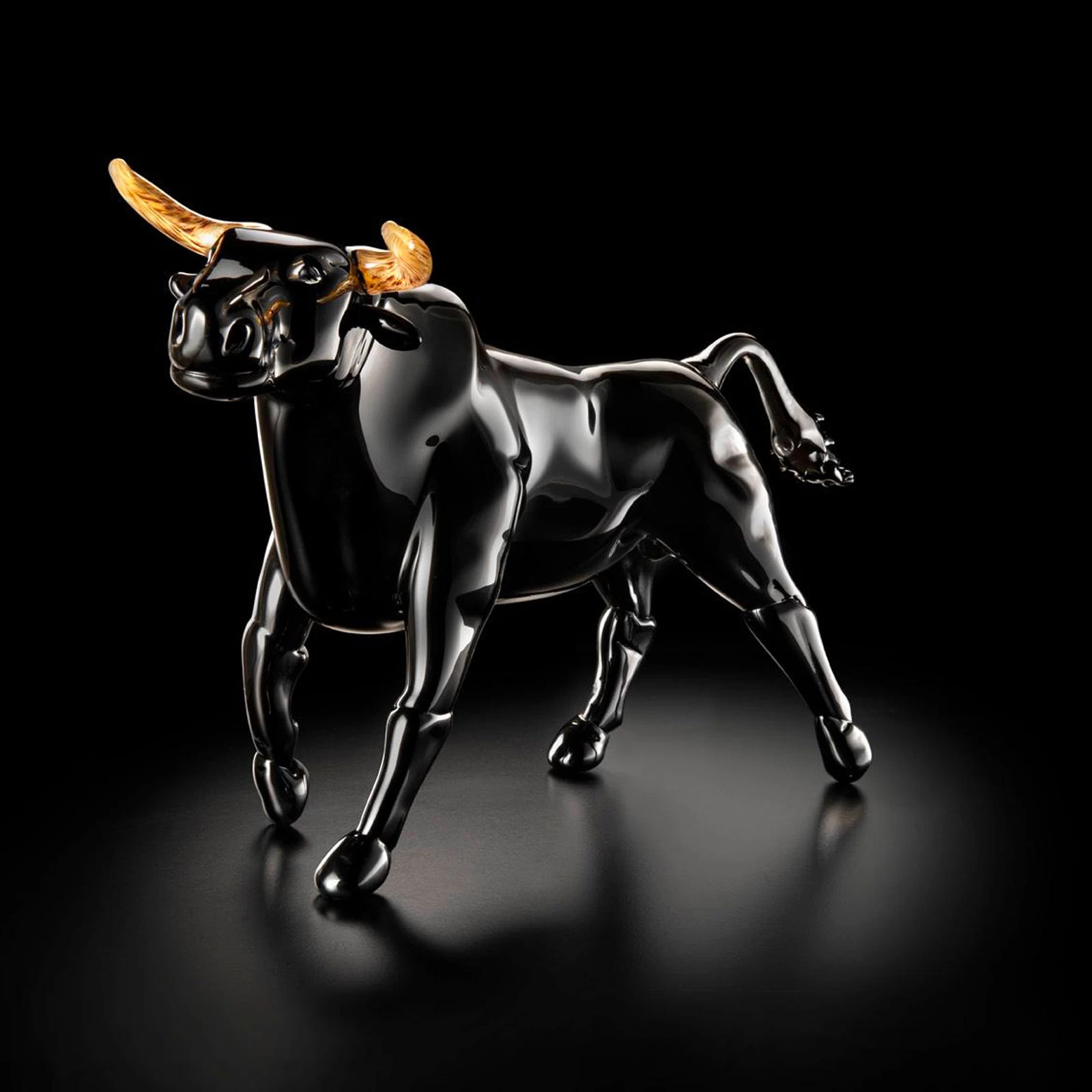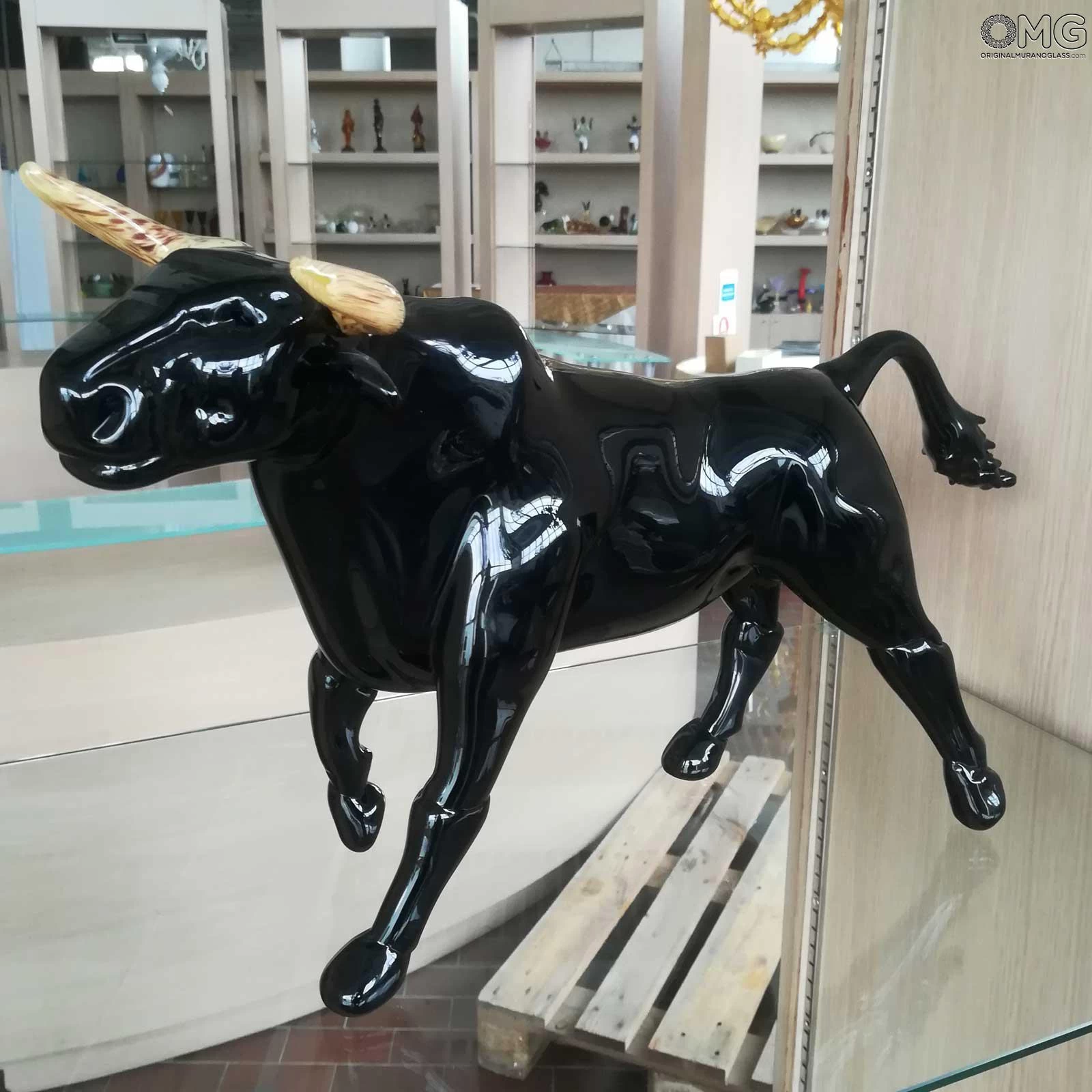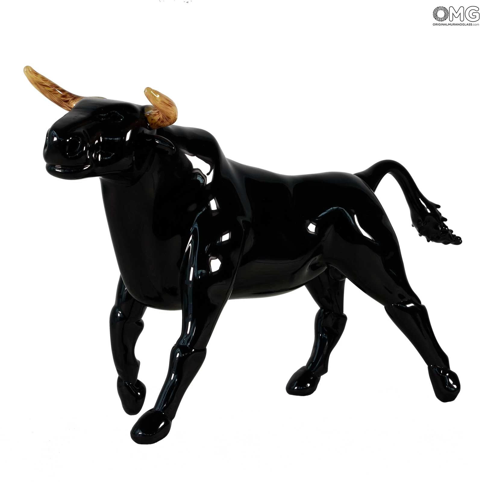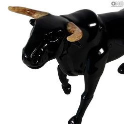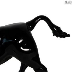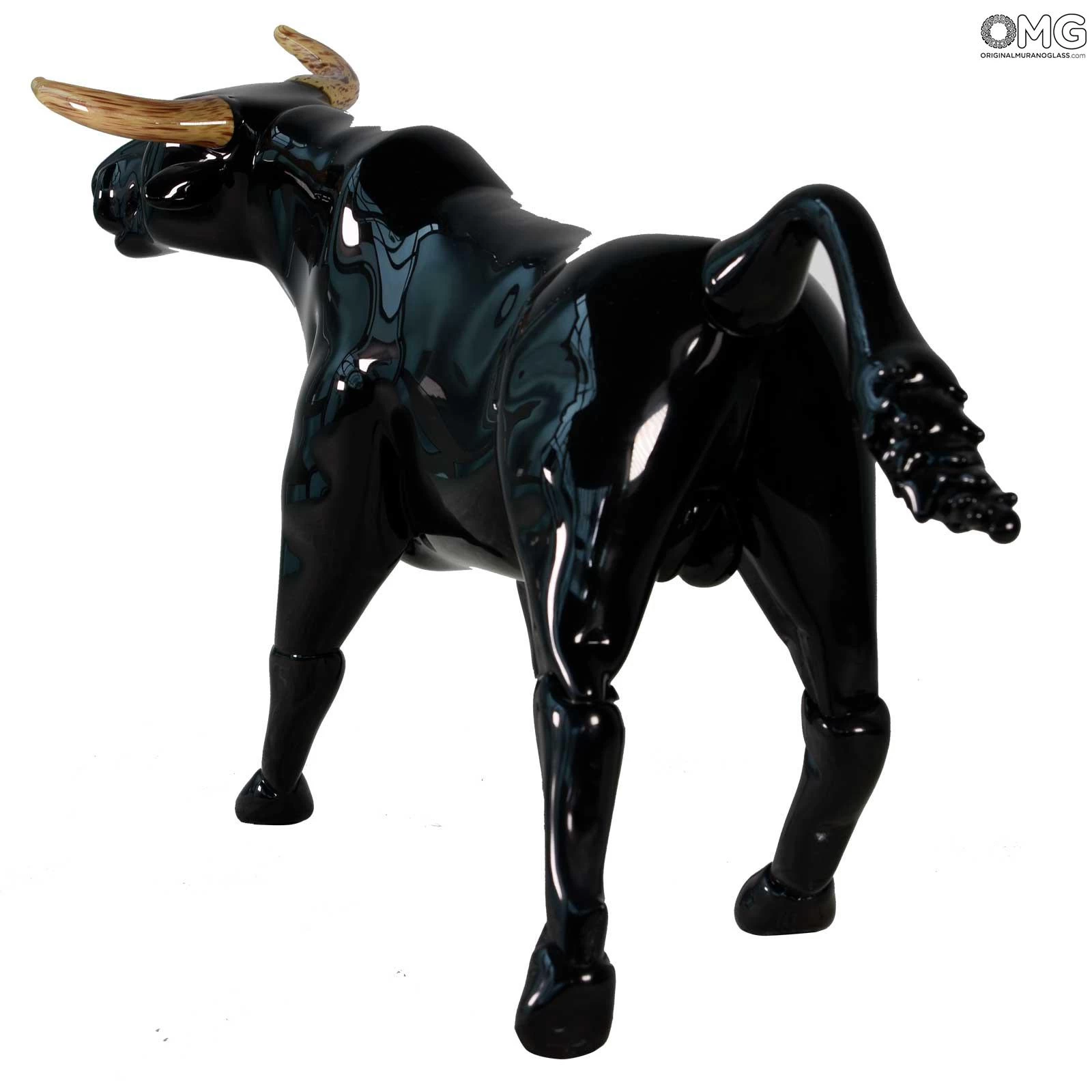 Exclusive and unique glass artwork of a bull, handmade in black glass, realized in free hand in solid glass.
