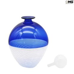 Little bottle handmade with the technique of blowed glass with white filgree.