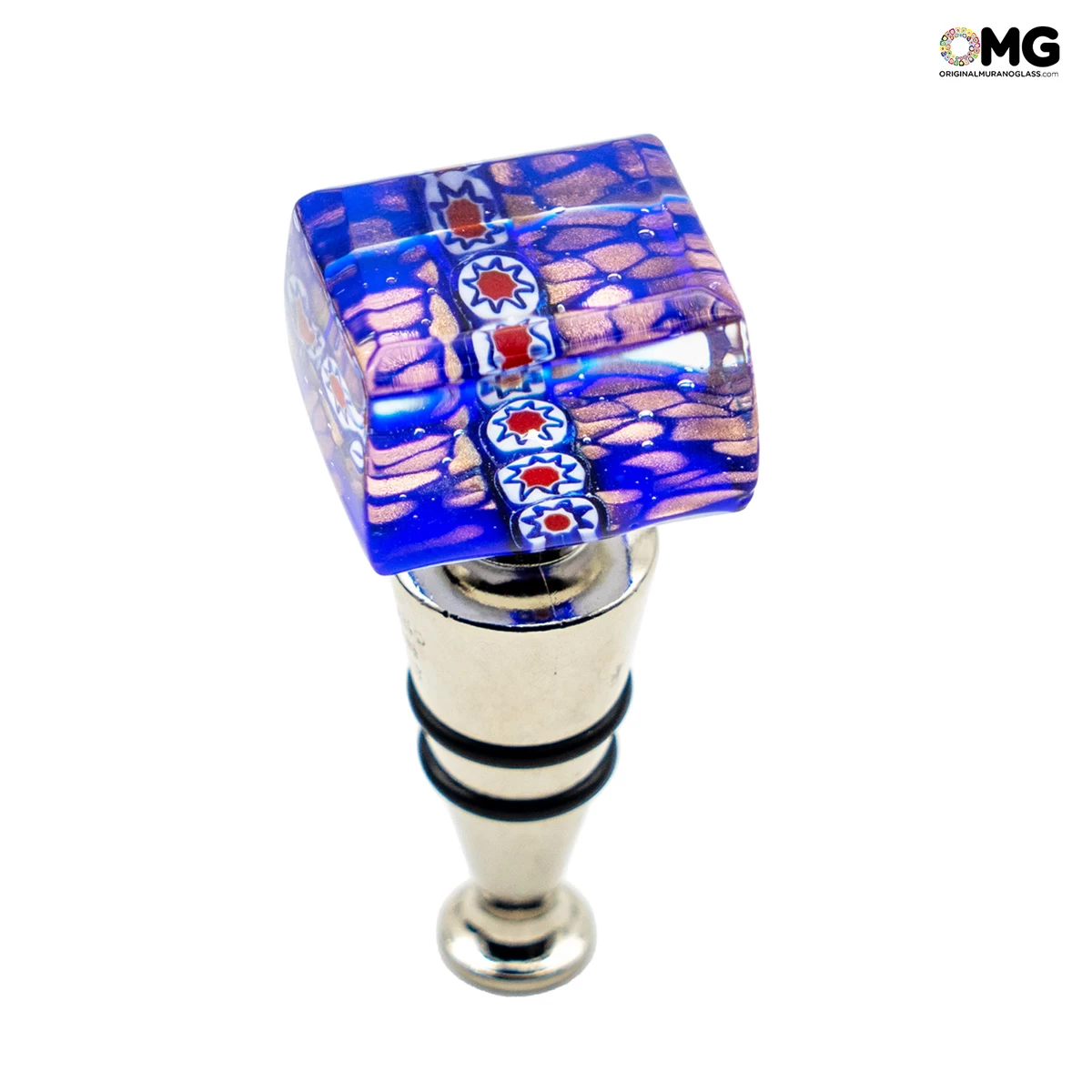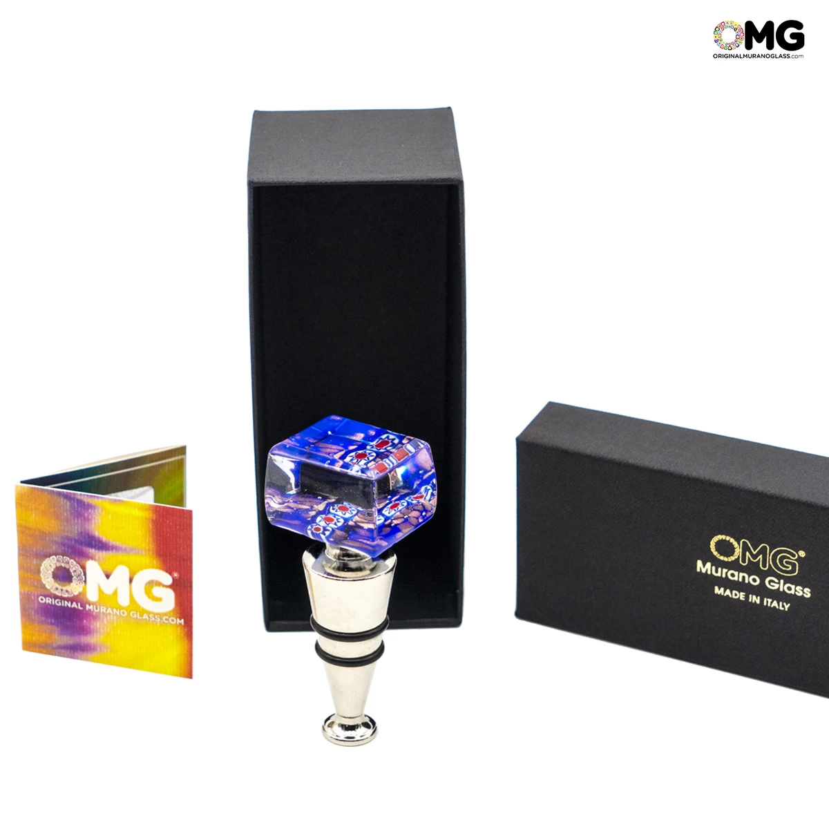 Bottle stopper handmade with the technique of fusing glass by Original Murano Glass OMG, with glass colors, millefiori and murrine.