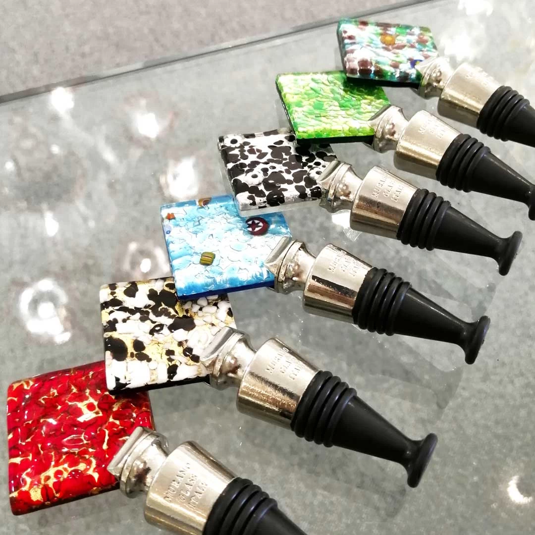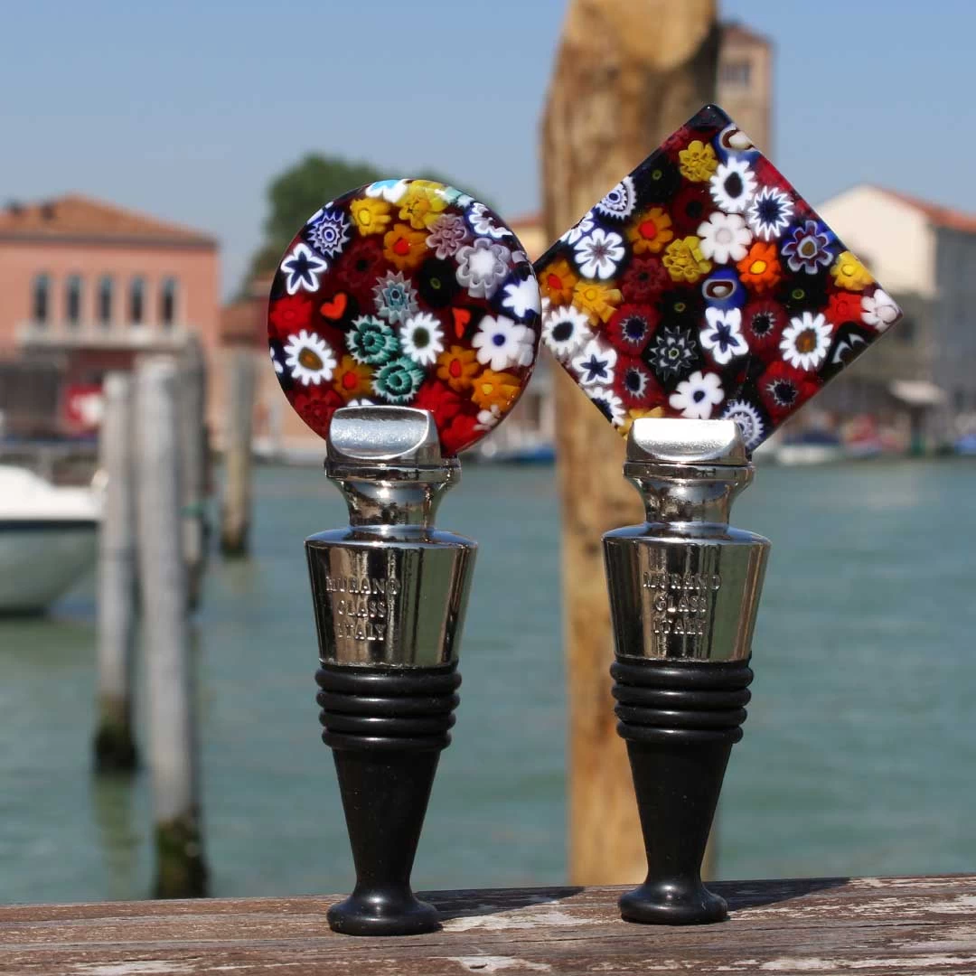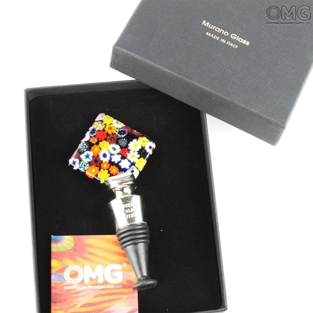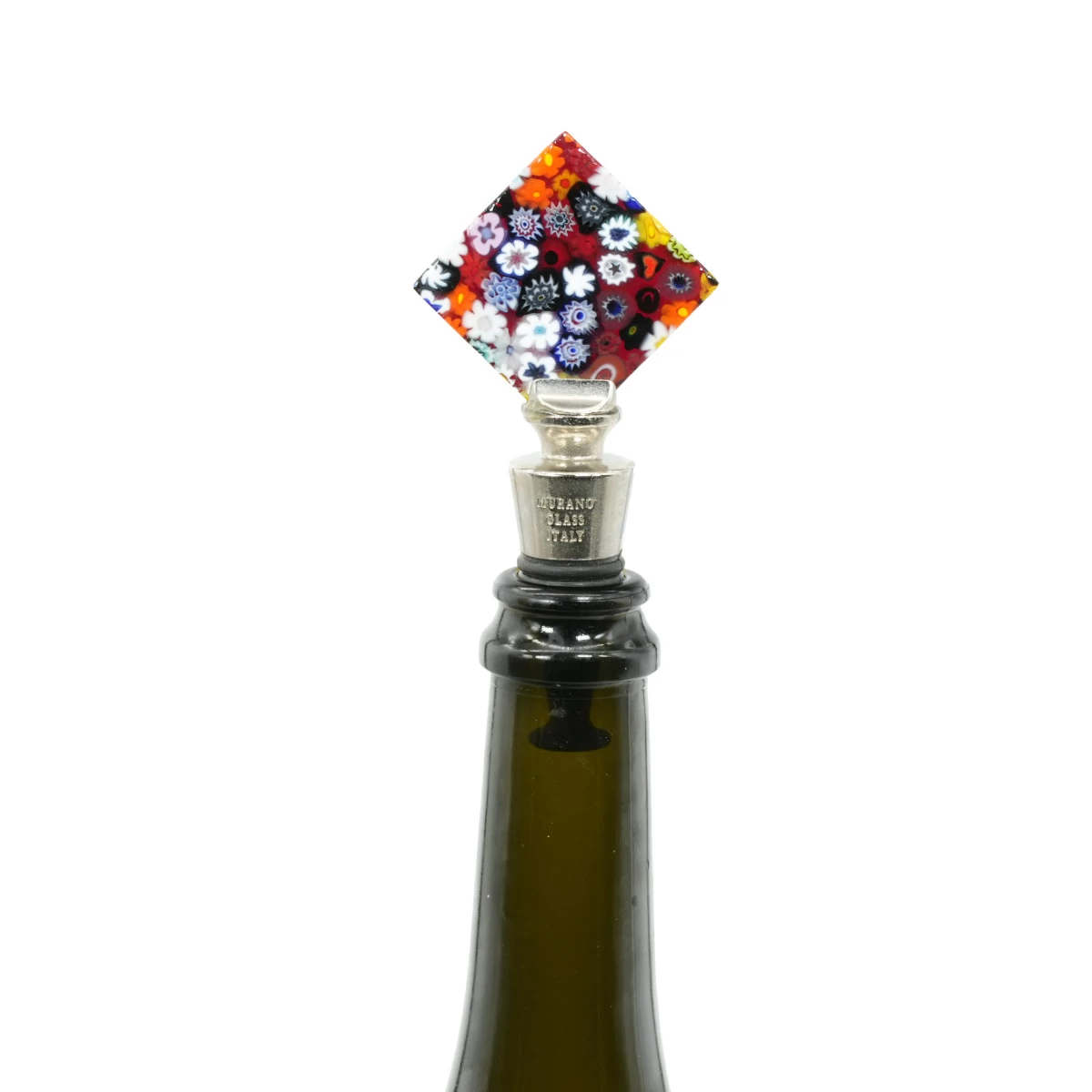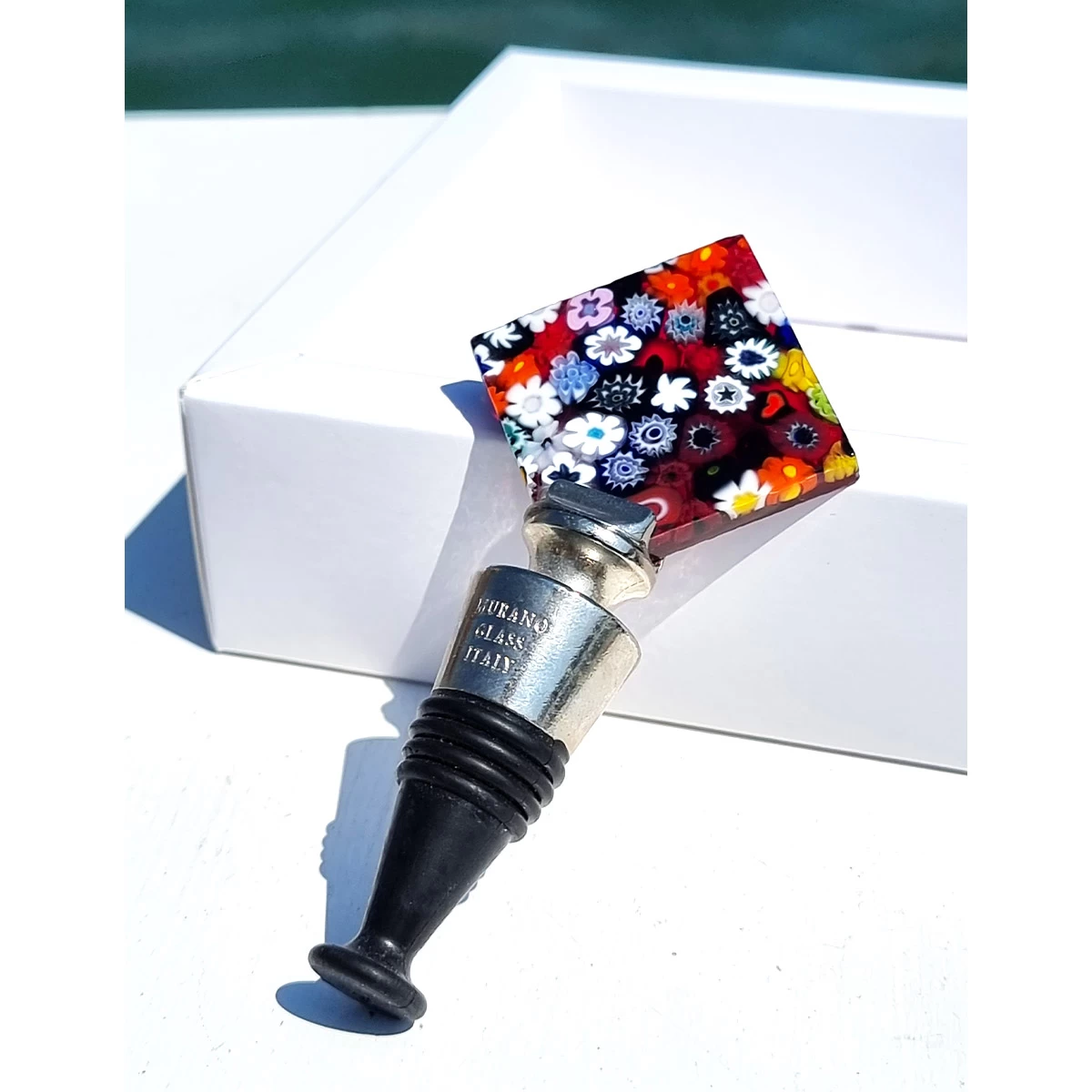 Bottle stopper handmade with the technique of fusing glass in Original Murano Glass, with addition of mix millefiori colors.