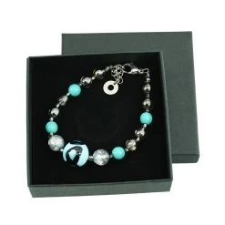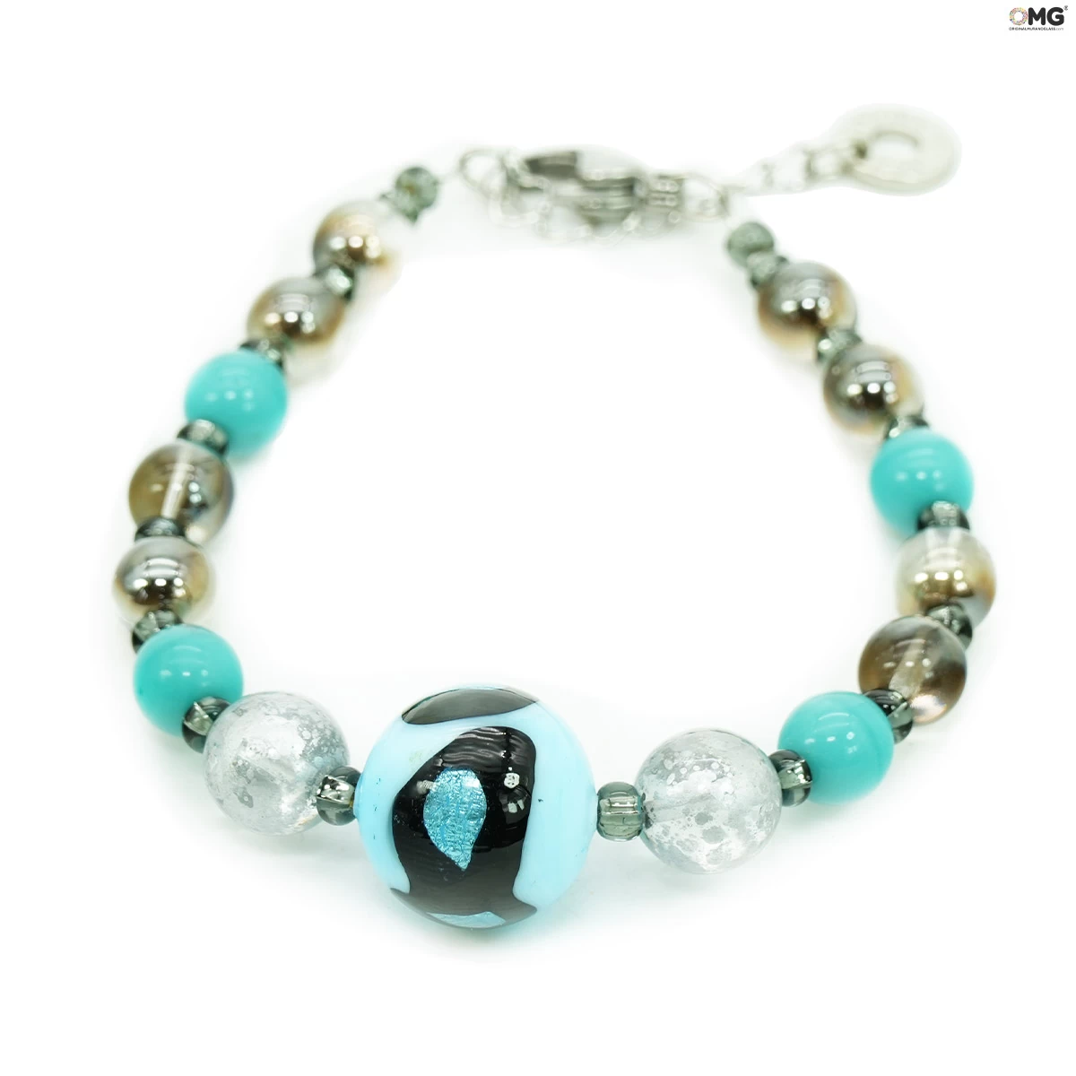 This bracelet is made in lamp working technique, and each bead is worked as single piece.