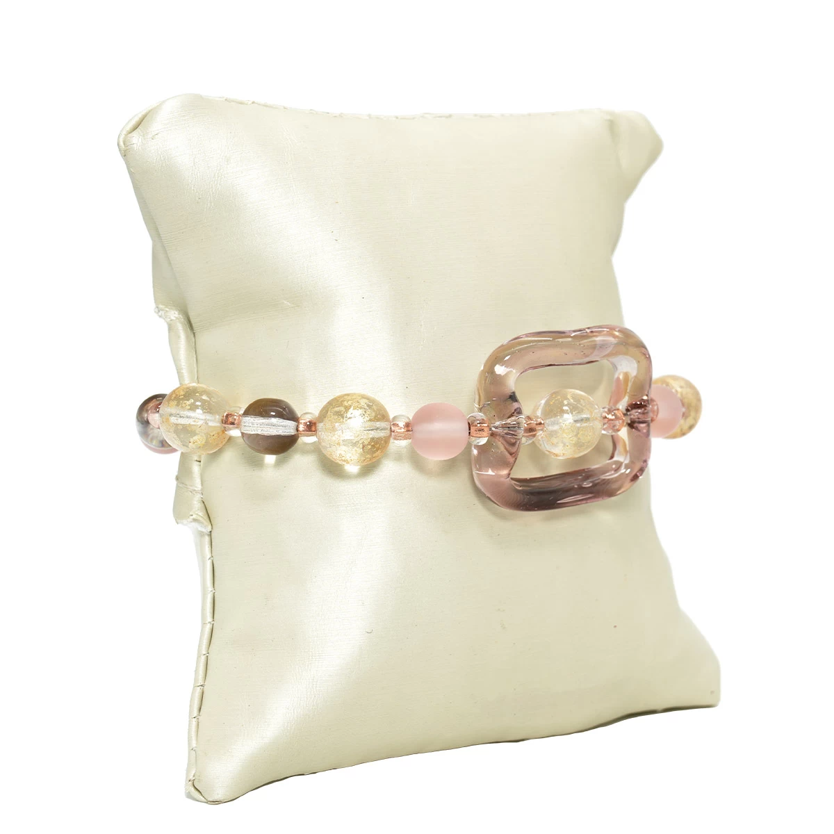 This bracelet is made in lamp working technique, and each bead is worked as single piece.
