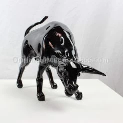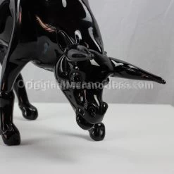 Exclusive and unique glass artwork of a bull, handmade in black glass, realized in free hand in solid glass.