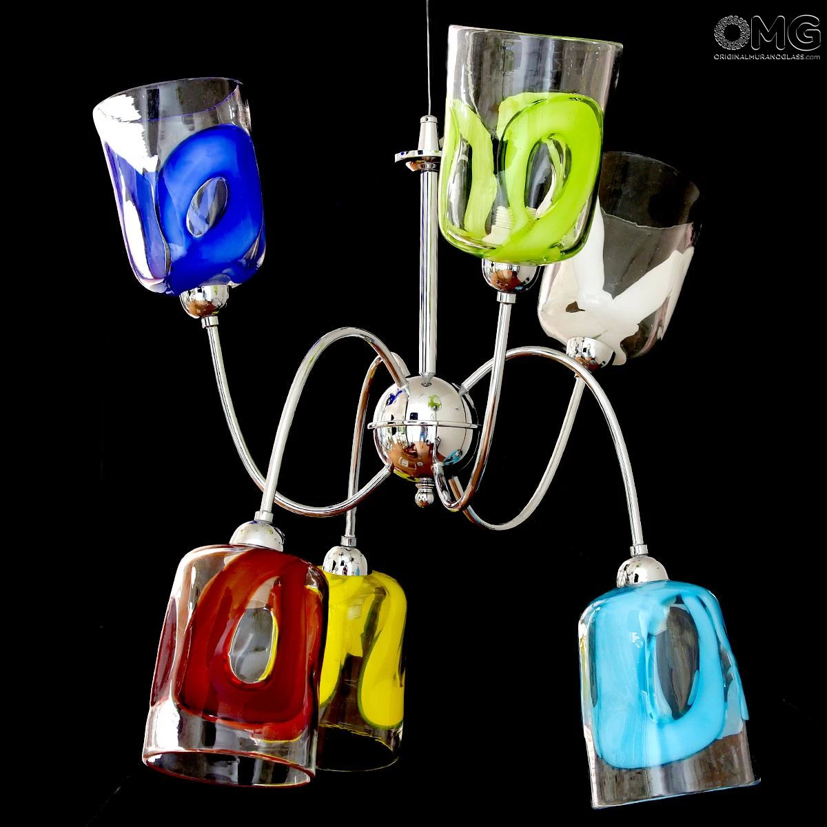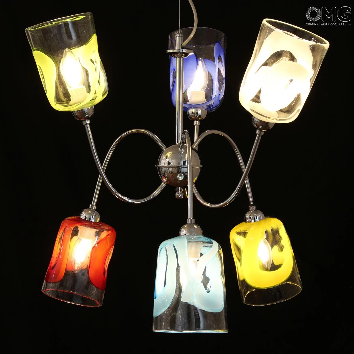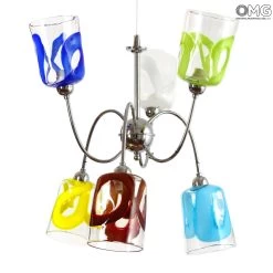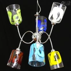 Original Murano Glass hanging lamp handmade in original venetian glass, with 6 cups holder in artistic glass. The cup is very elegant. This Murano glass light will enrich your living room bed room and any room space with unique light colors.
