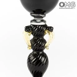 Very nice set of flute glasses. All items are handmade with glass and gold leaft 24kt. Made by blown glass technique. Elegant and preciose artworks pieces. Not stamp, but each Champagne Flute of this collection is an unique piece handmade. A new line of Champagne flutes inspired by baroque art years but revisited in a new style.
