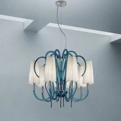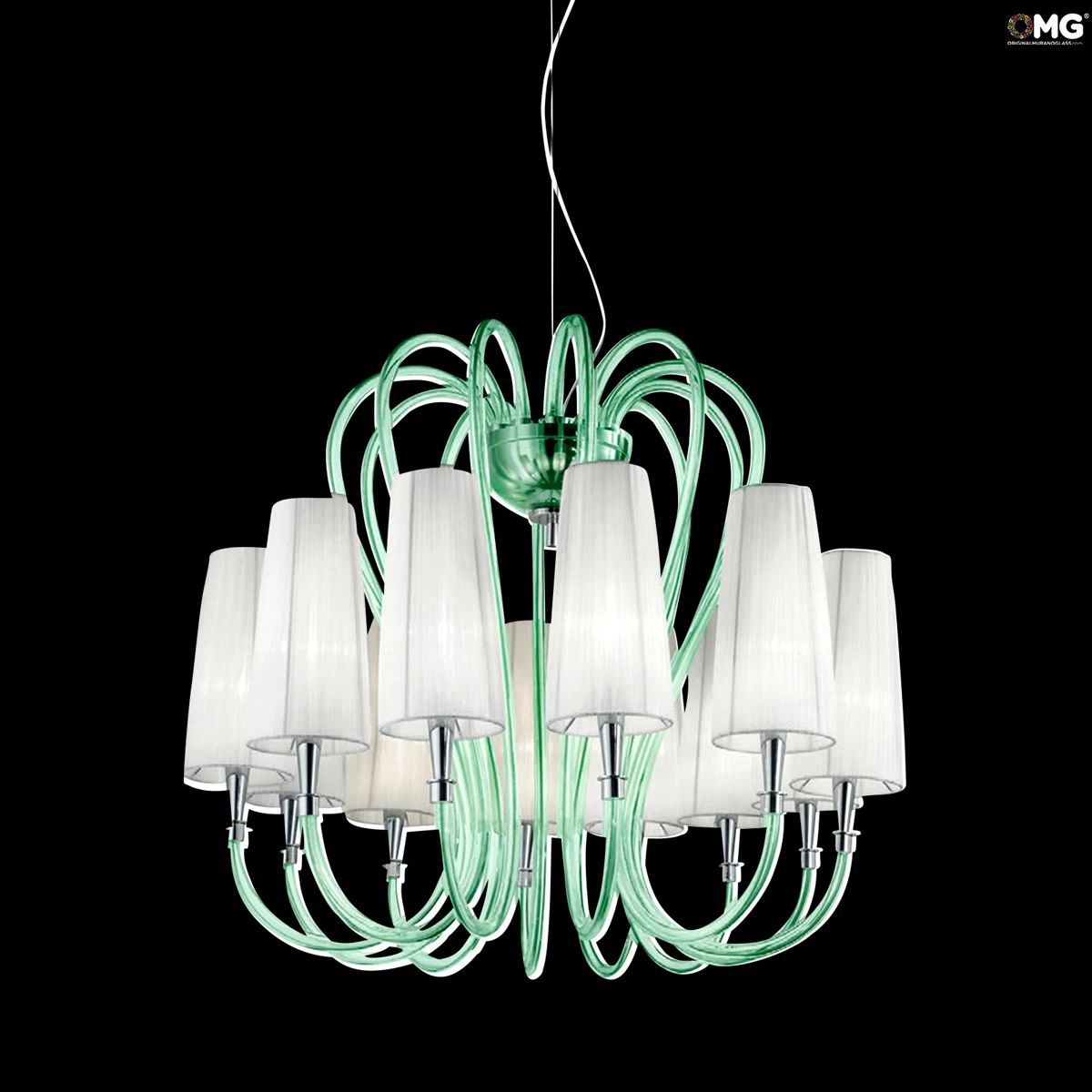 This Murano glass collection is adorned with handmade lamp shades and was designed for the tourist-hotel-hospitality industry or for contract design of large prestigious buildings.Â