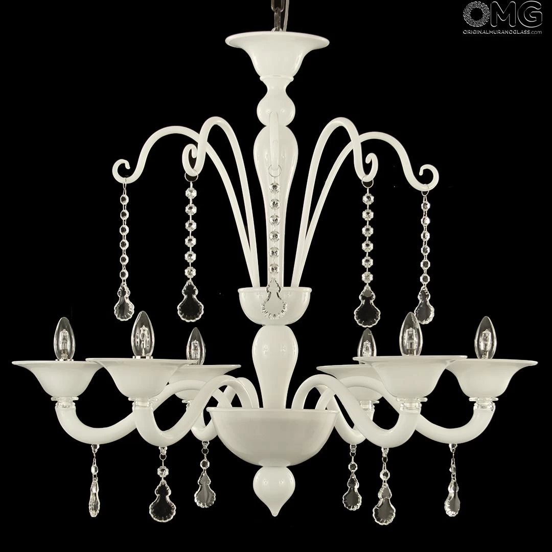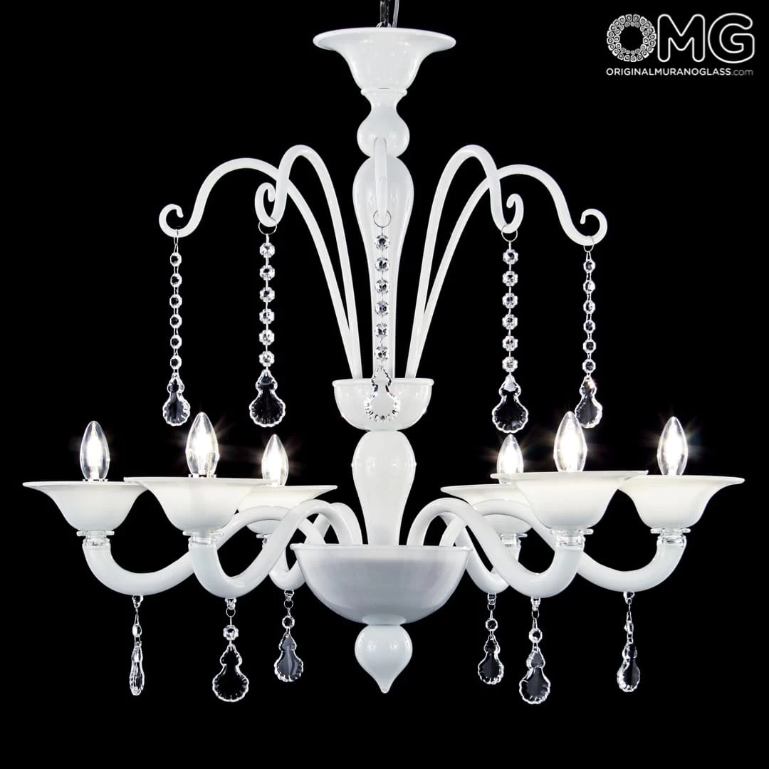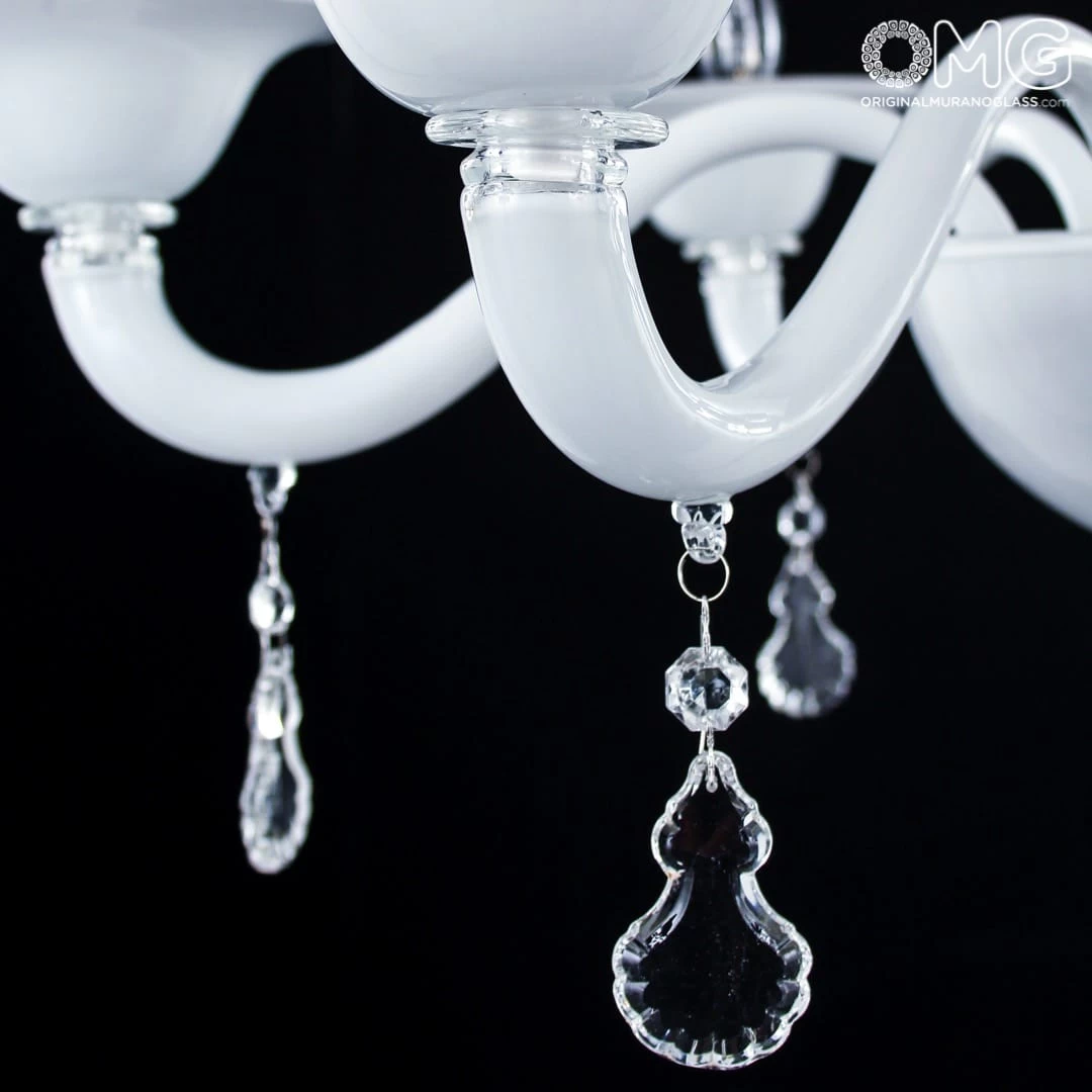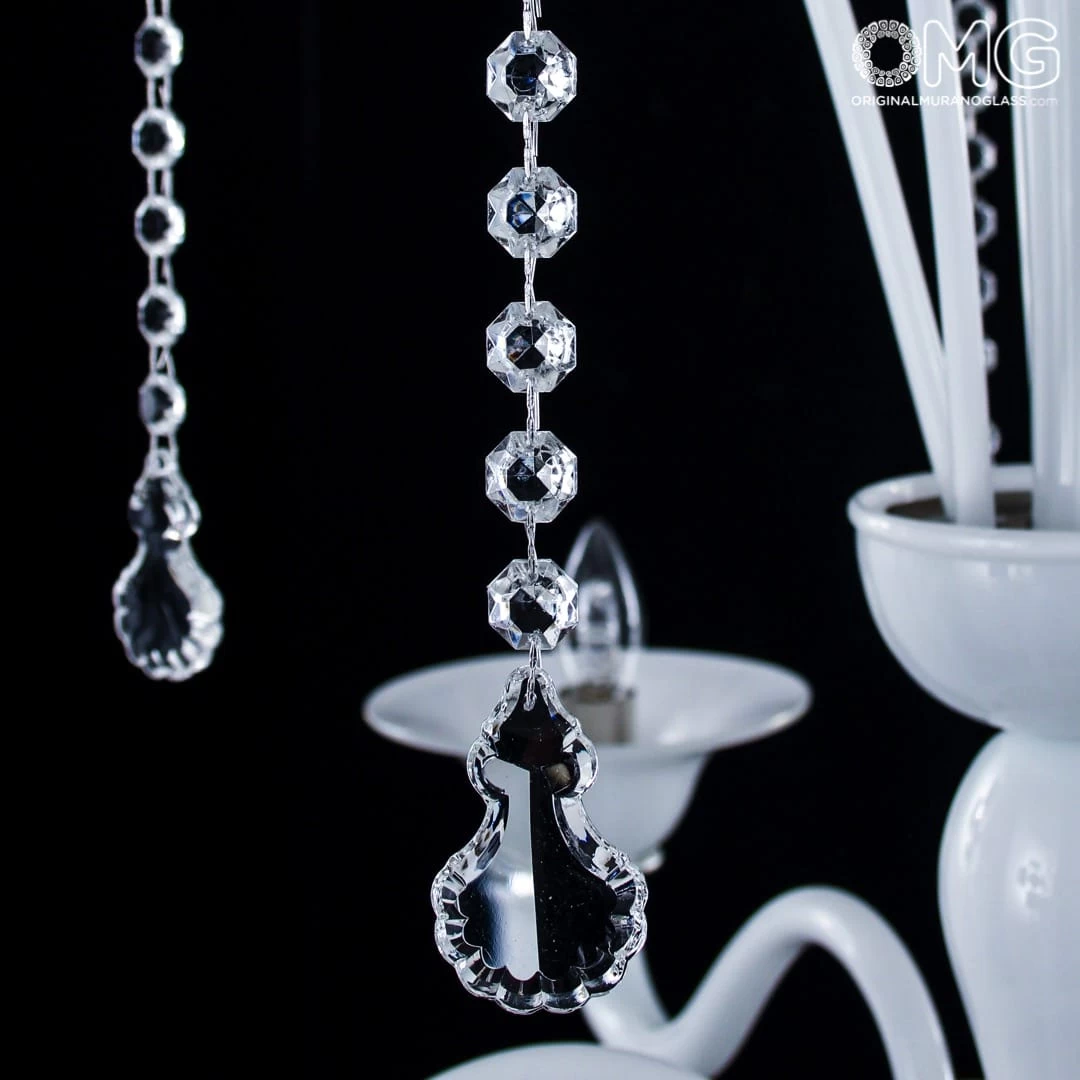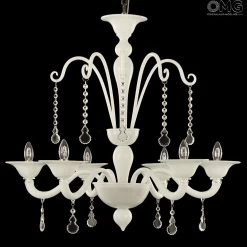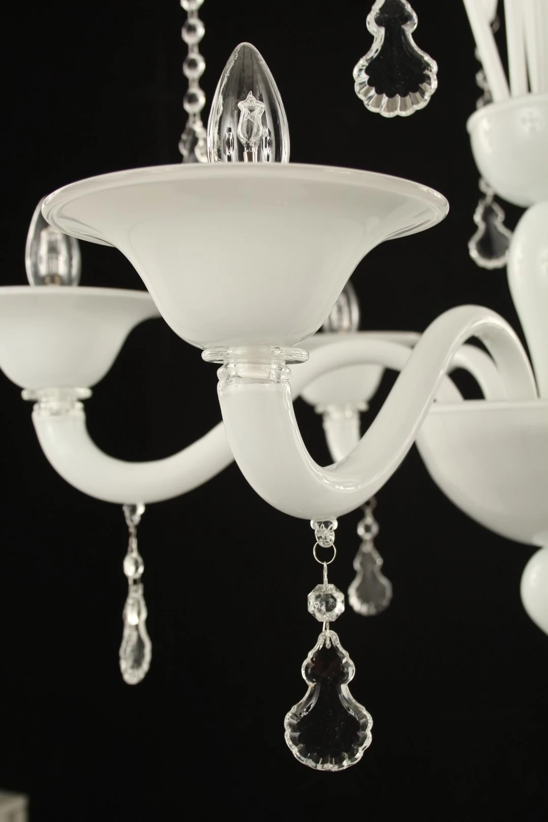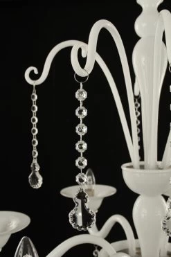 Luxury Chandelier in white matt glass color with crystall pendants.Â