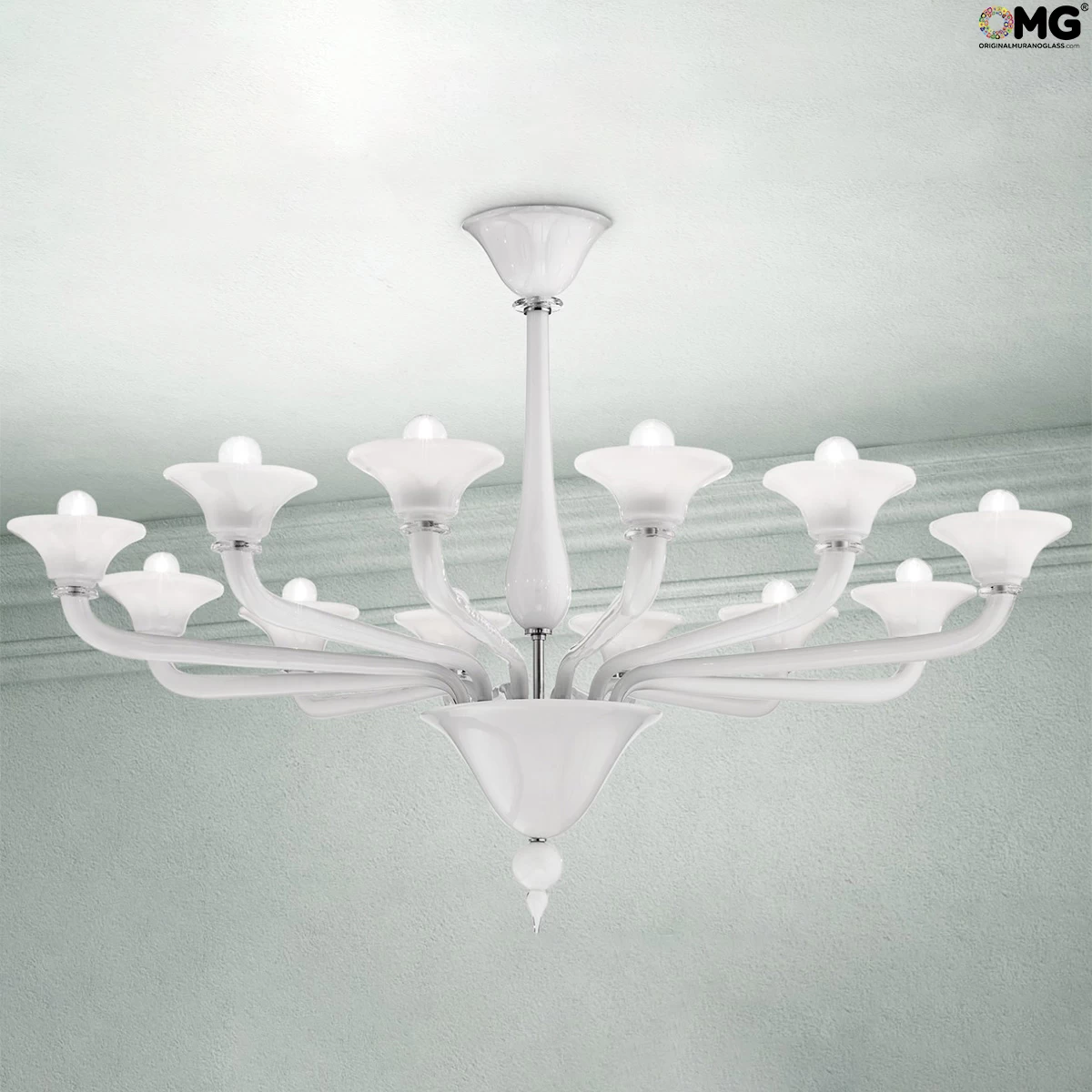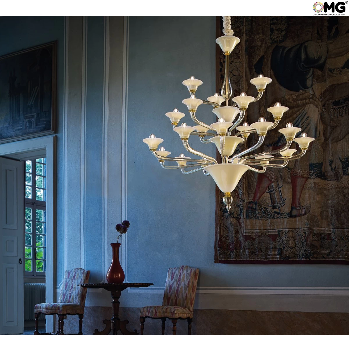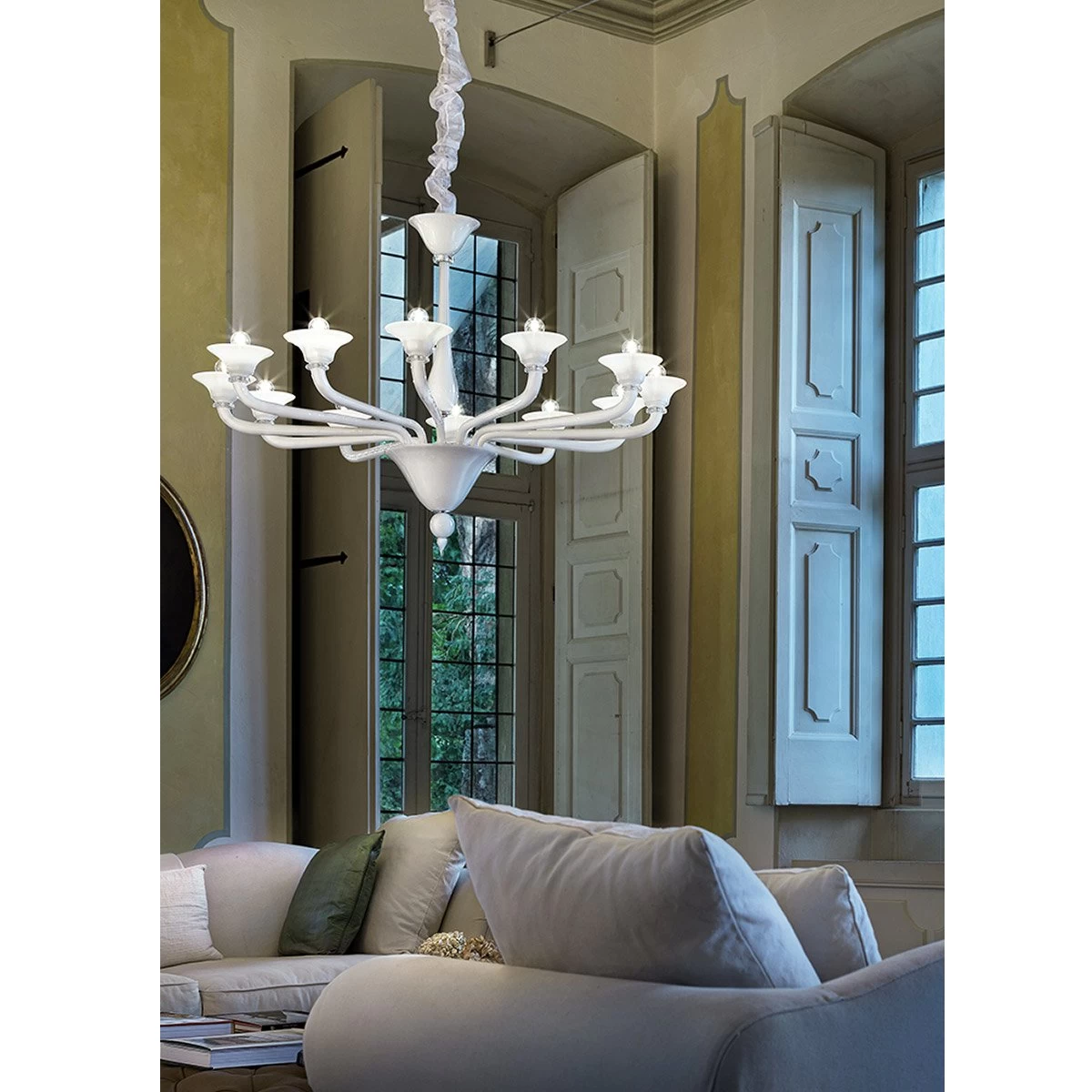 An essential design whose lines are both vigorous and graceful thanks to the radiance of the smooth blown-glass surfaces that alternate transparent branches with cups crafted with the incamiciatura technique. The care to detail is highlighted by the chrome or gold-plated metal components that adapt with ease to specific tastes and intended use.Â