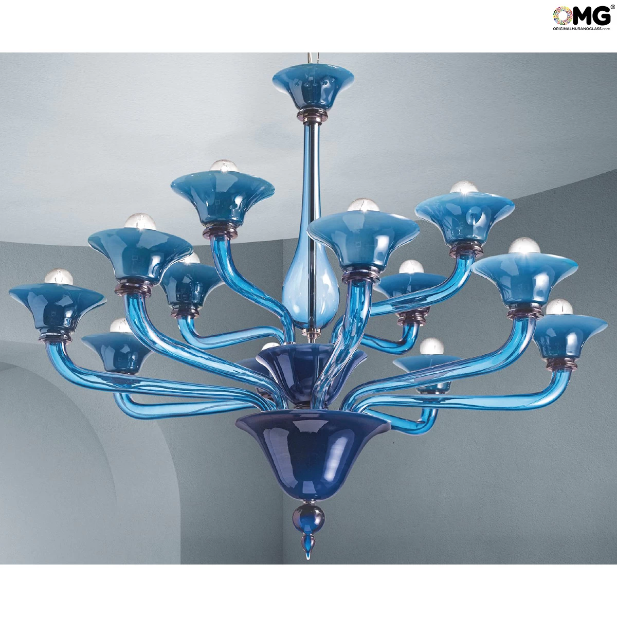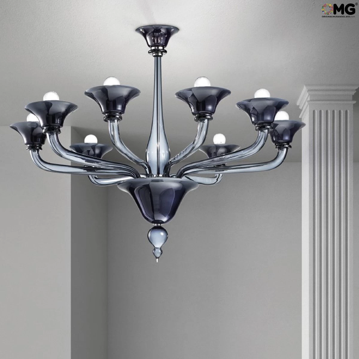 Lights number, dimensions, glass colors and metal finishes of the chandelier could vary, please look at pictures description for all details.