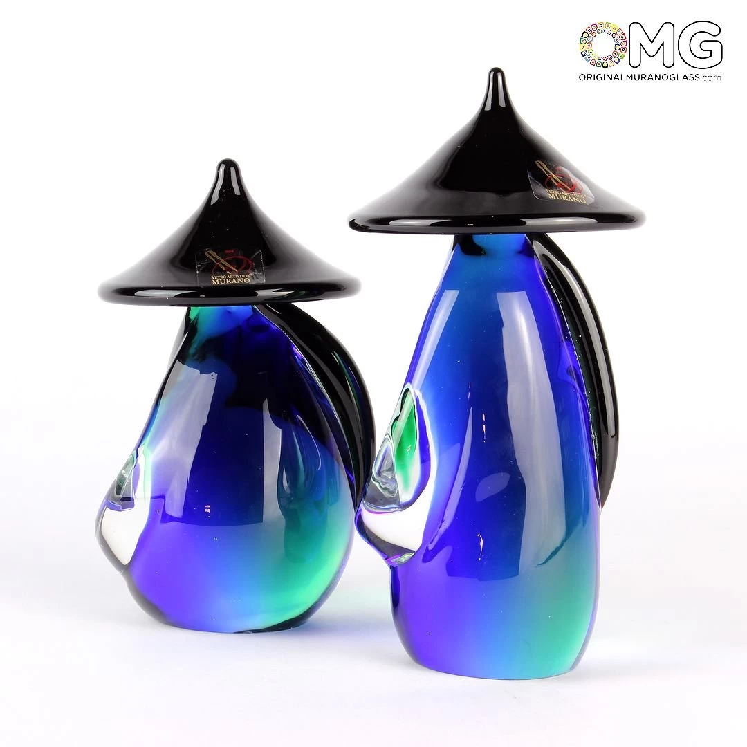 Chinese Small Couple Green & Blue – Ethnic Figures – Murano Glass