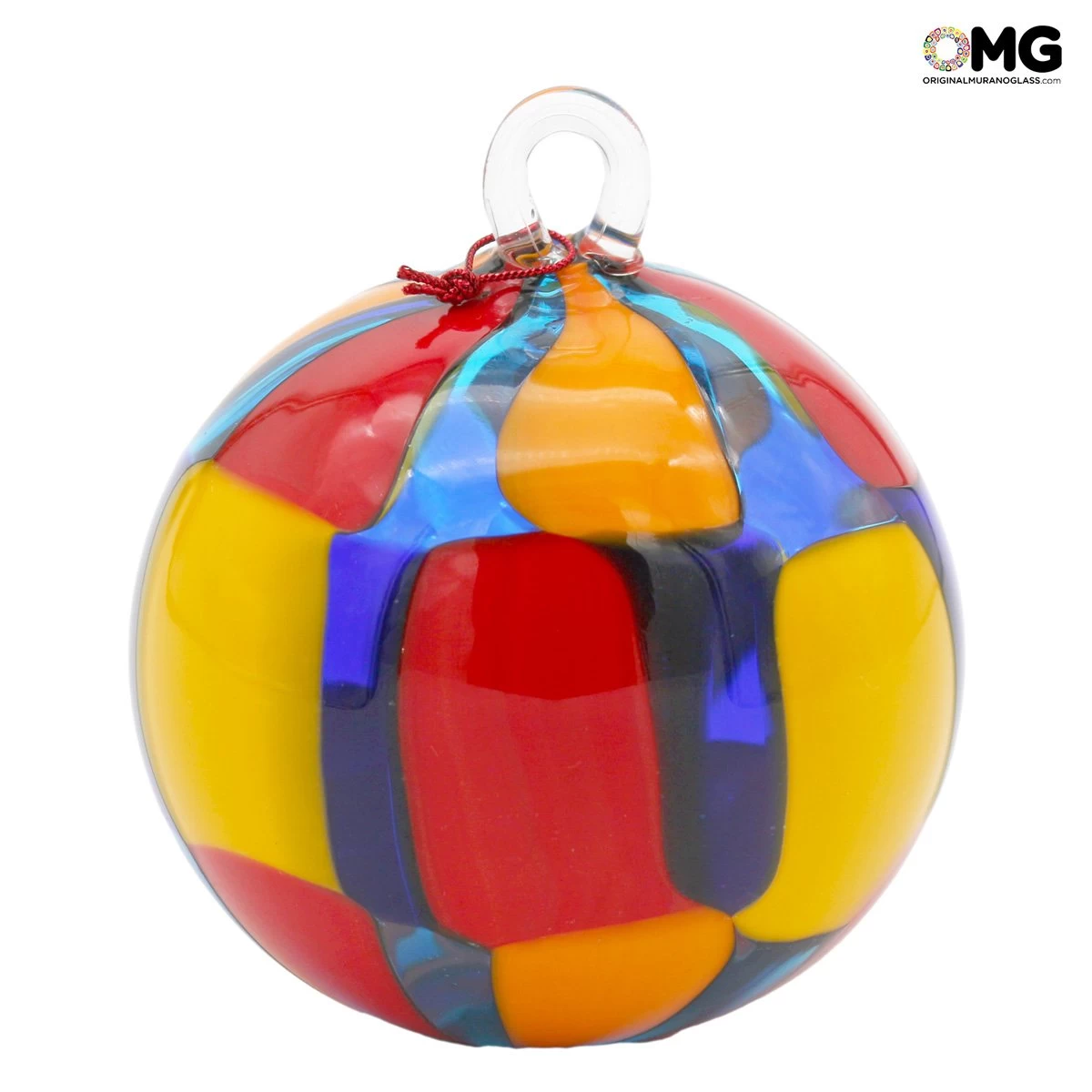Original Murano Glass xmas ball. Either if you desire to give a special atmosphere to your house or decorate in a different way your christmas tree these christmas balls are the right solution. Handmade using Glassblowing technique the glass christmas balls are a milestone in the Murano Christmas. This model is produced using colored glass, joined to the mass of glass, than melted and blown. This is great gift idea for your beloved, with custom message and engraved sentence on surface.