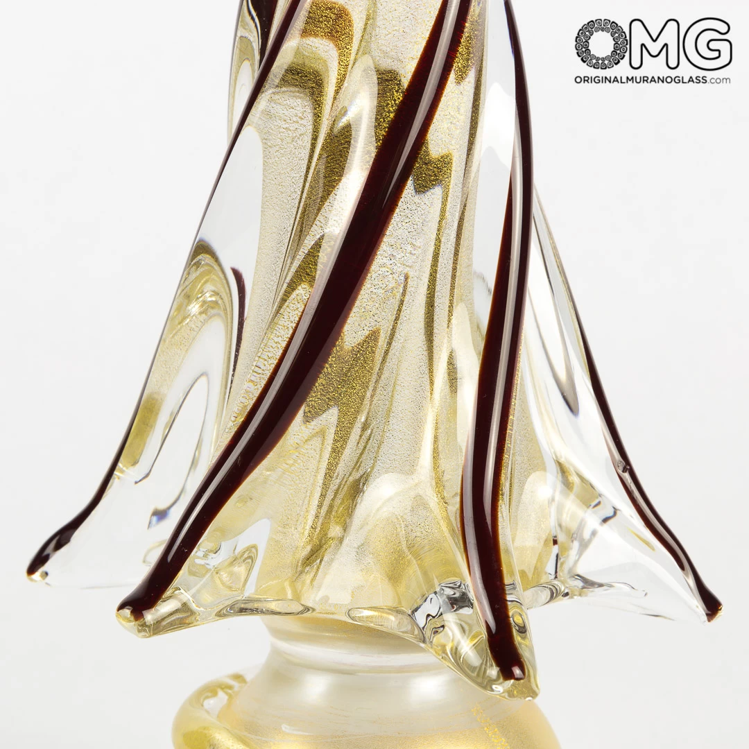 Either if you desire to give a special atmosphere to your house or decorate in Christmas style this tree is the right solution. Handmade using modelling technique, the glass Christmas tree is a milestone in the Murano Christmas. This model is produced using real pure gold leaf joined to the mass of glass, than melted and shaped. So in this way the tree is even more precious and elegant.