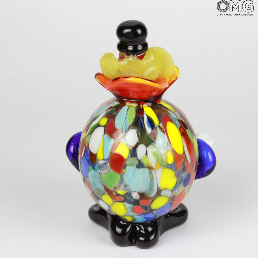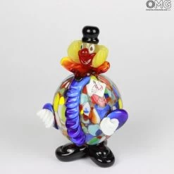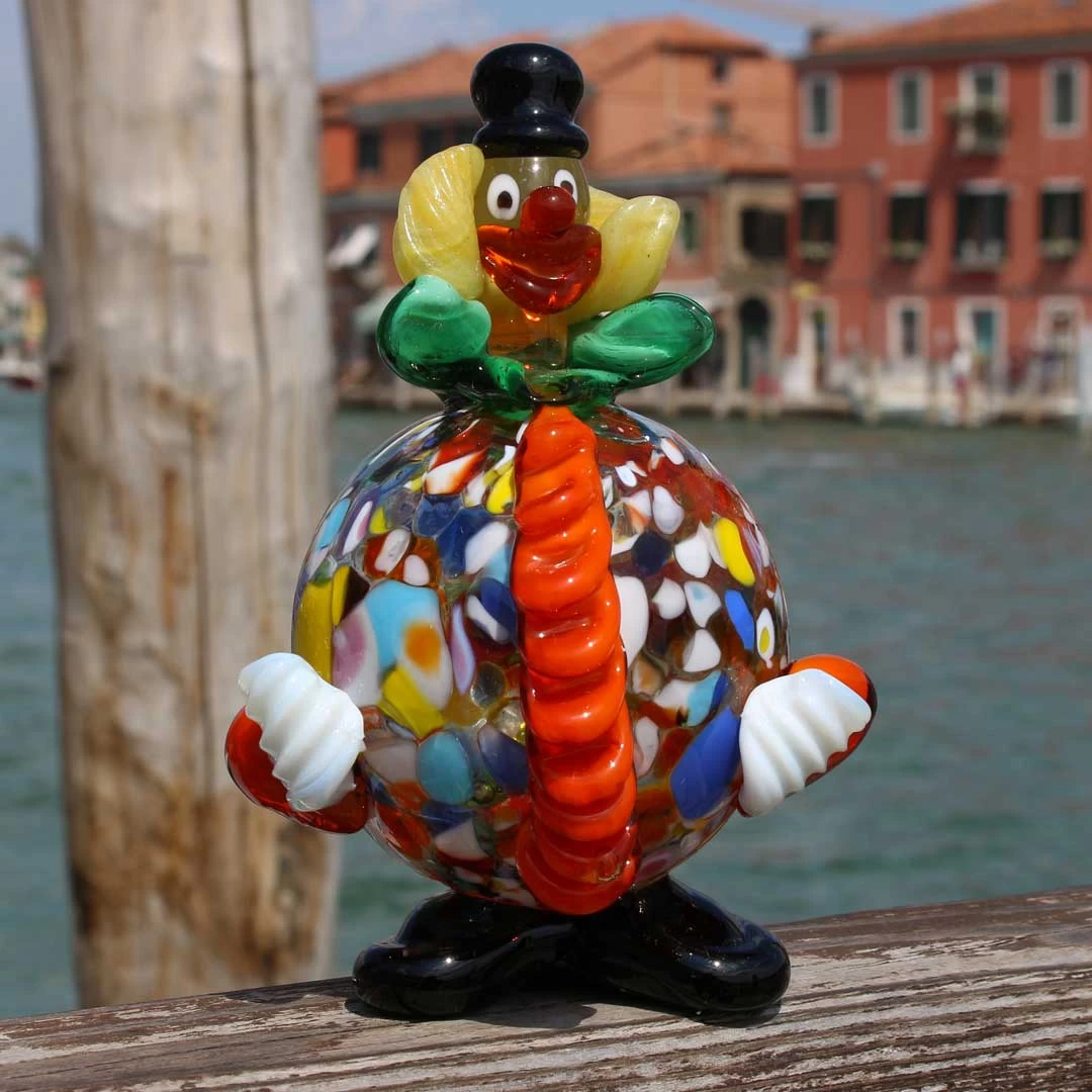 Beautiful clown sculpture made in venetian glass with the tecnique of blown glass and multicolored  decorations. Perfectly proportioned. Hand made by the master. Venetian glass certified Vetro Artistico MURANO.