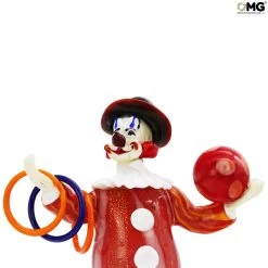 Exclusive clown figurine handmade with the technique of warm glass modellation and multicolored  glass decorations. Perfectly proportioned details, exclusive piece of artglass for home decor made in Italy for collectors.