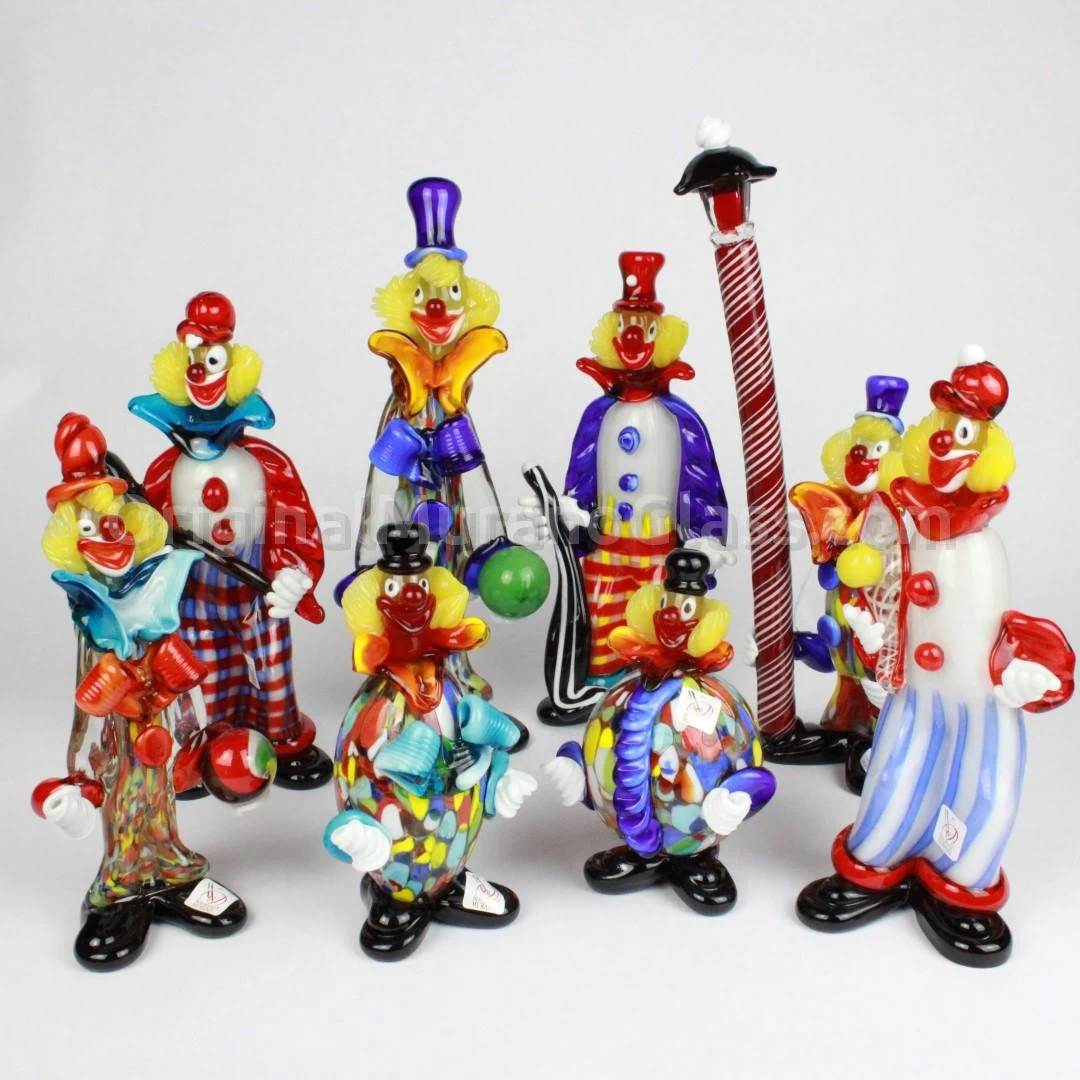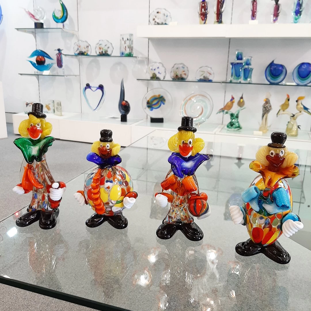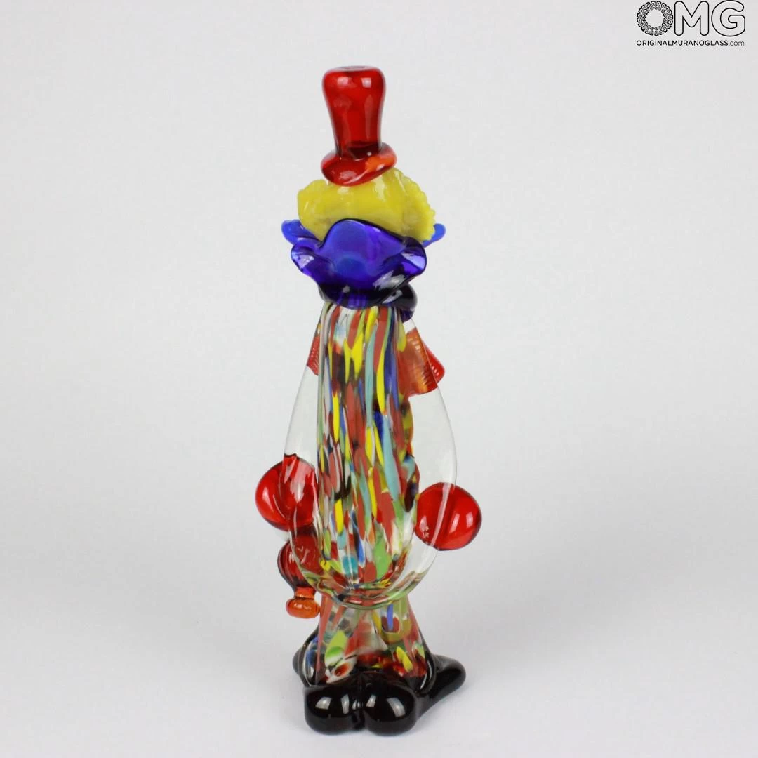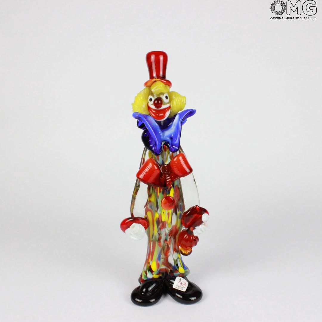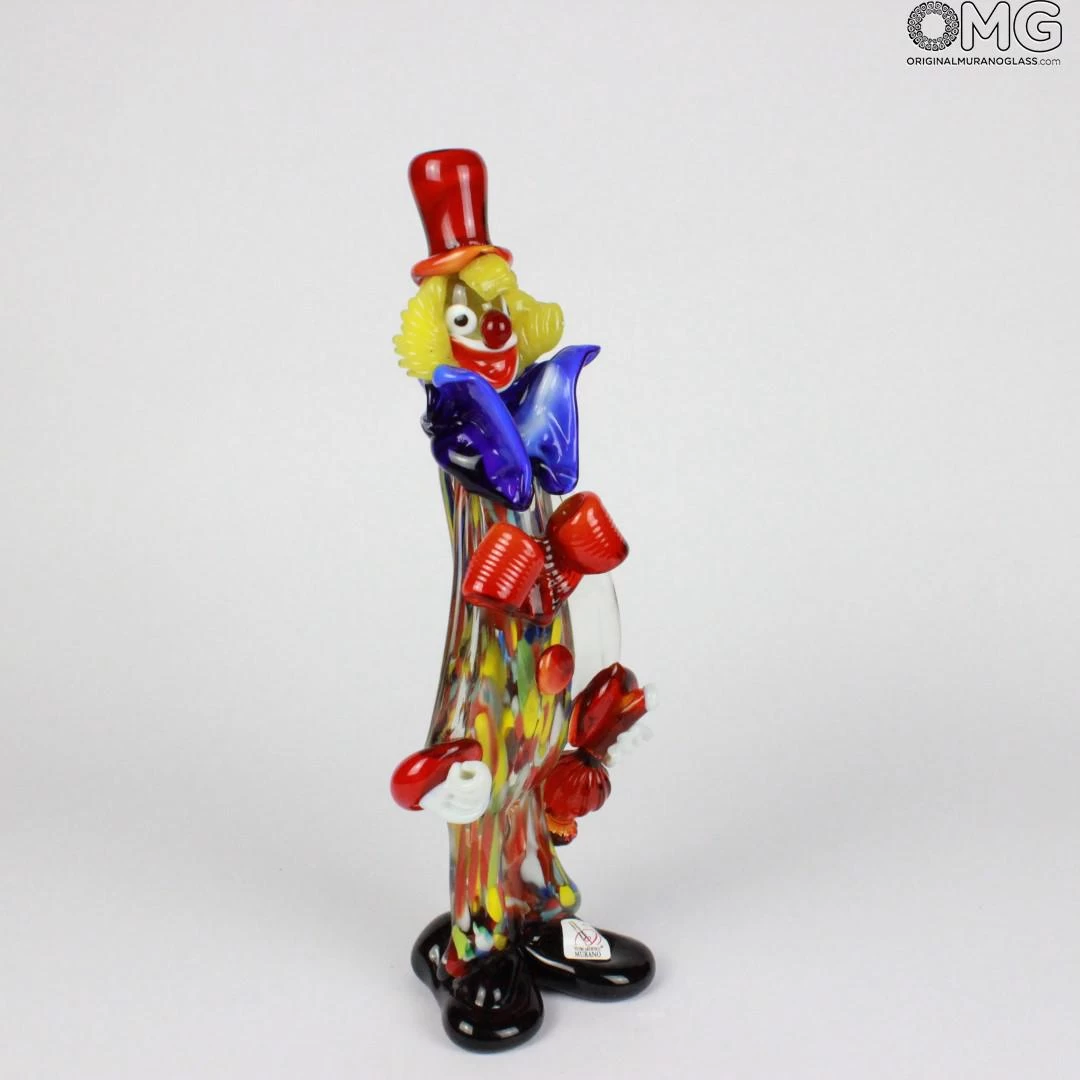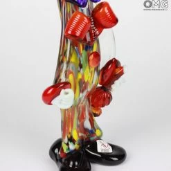 Beautiful clown sculpture made in venetian glass with the tecnique of warm glass modellation and multicolored decorations. Funny and perfectly proportioned. Hand made by the glass master.