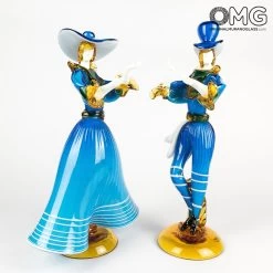 Beautiful sculptures of a venetian couple, interelly handmade with the technique of warm glass modellation.