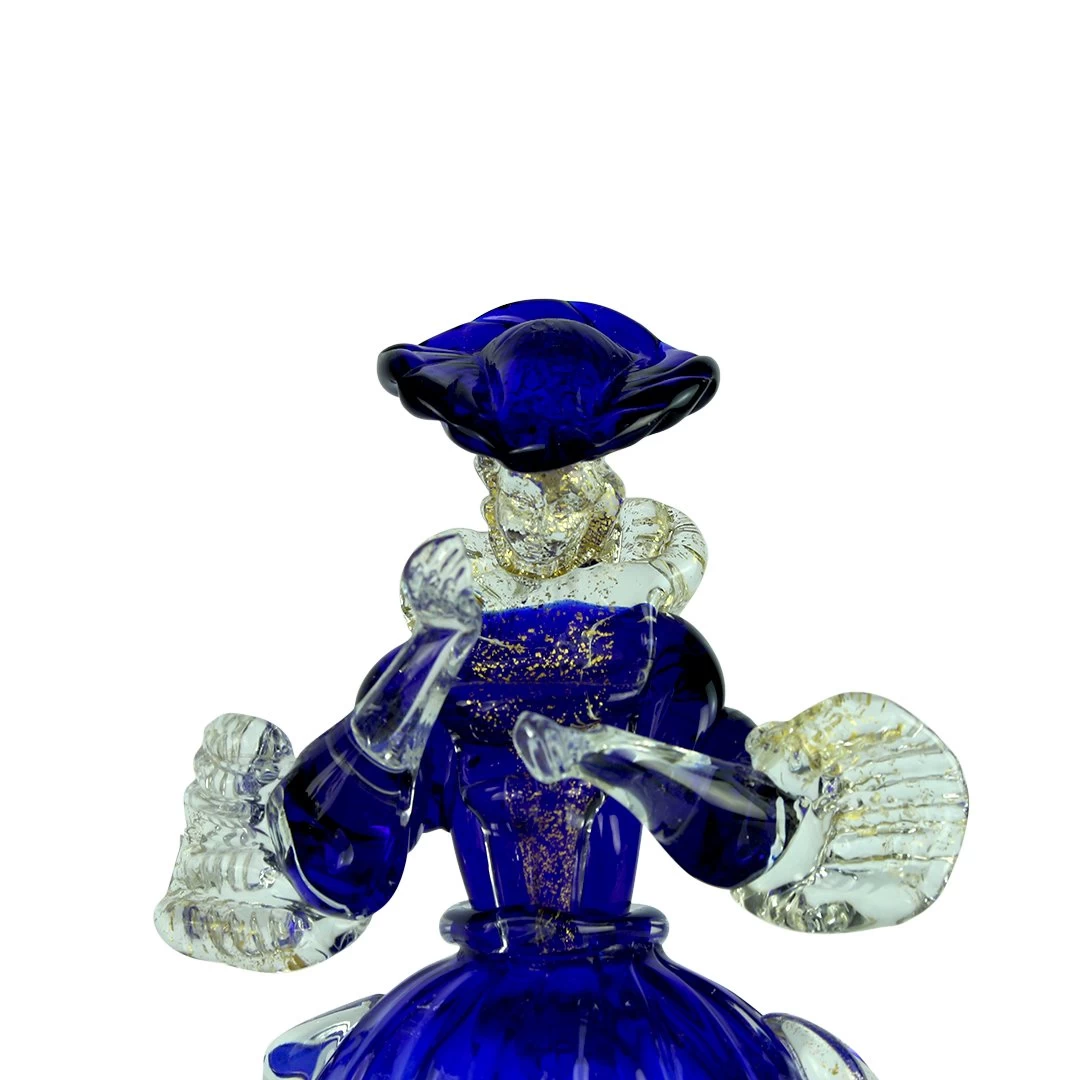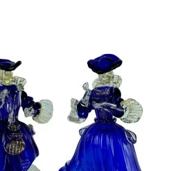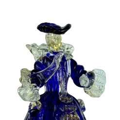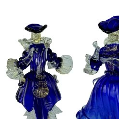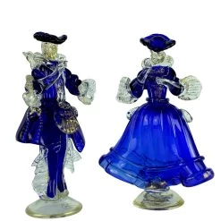 Beautiful Goldoni couple, sculptures made with the tecnique of warm glass modellation and gold decorations. Very stylish couple full of harmony and color, perfectly proportioned. Hand made by the master and signed with cold engraving.