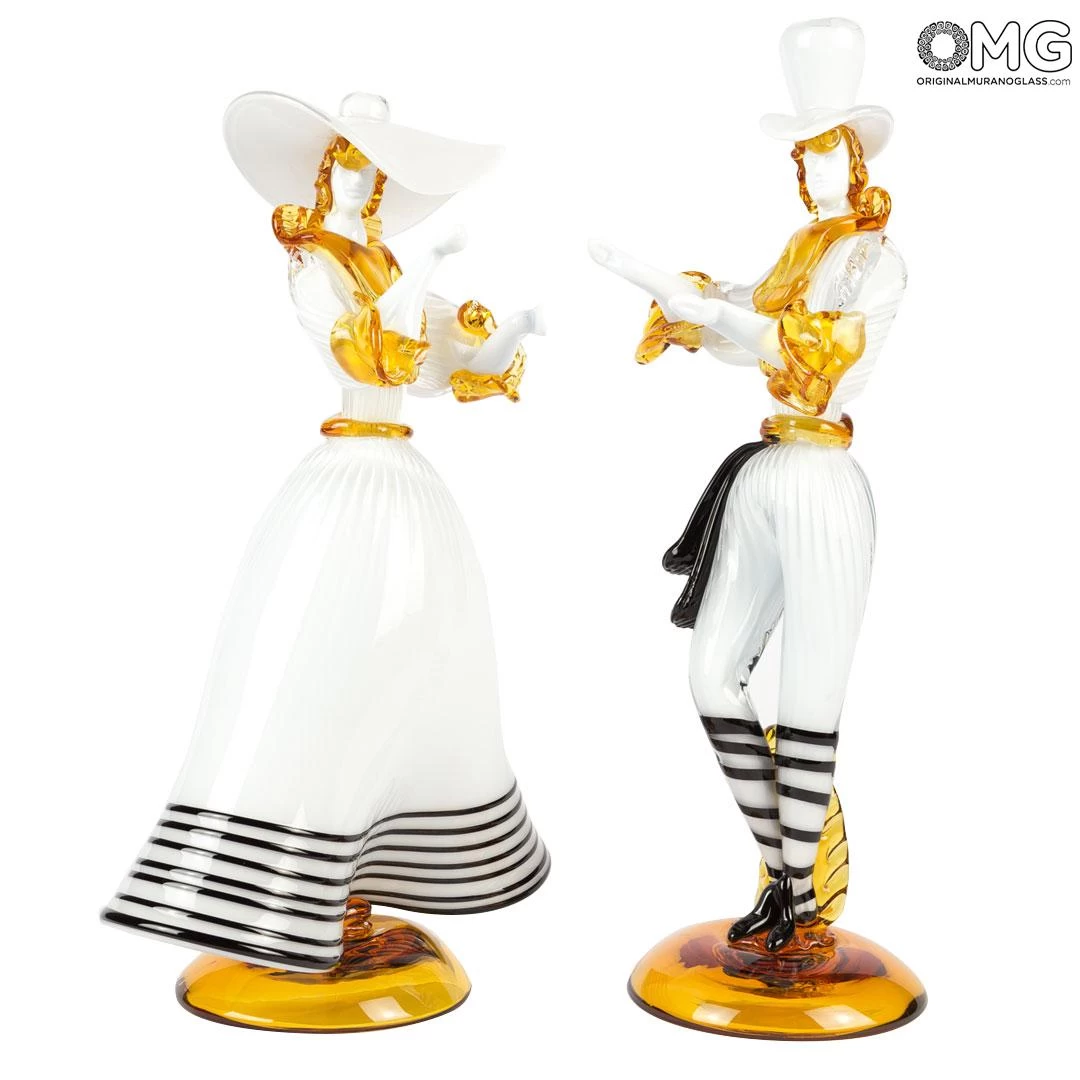 Beautiful sculptures of a couple of dancers, interelly handmade with the technique of warm glass modellation.