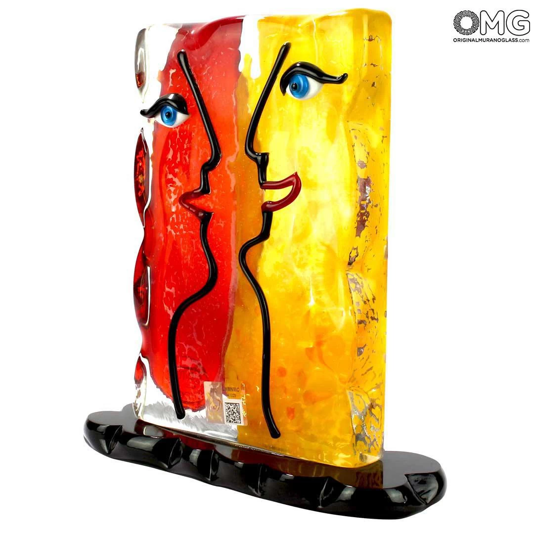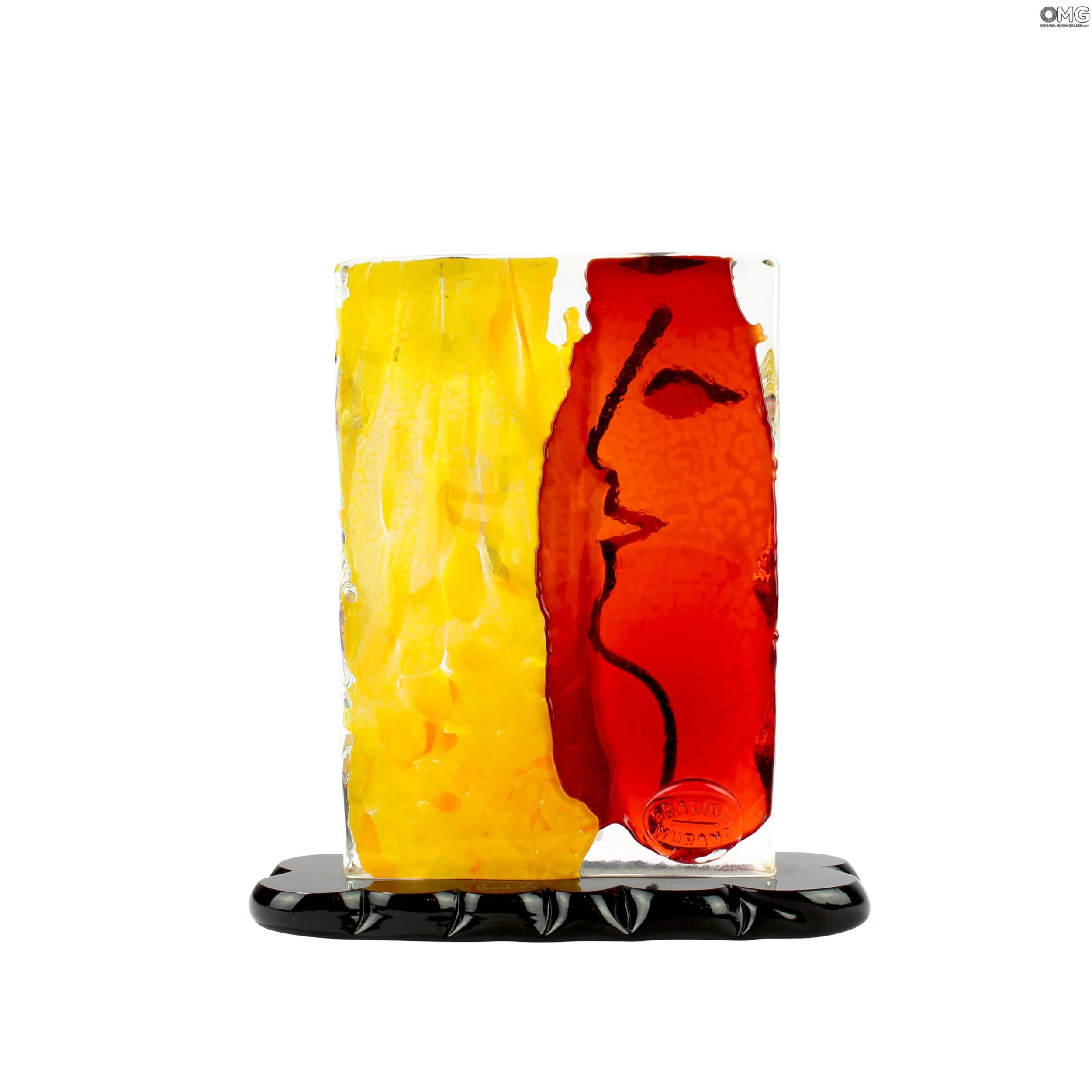 Great sculpture with modern and artistic design inspired by the cubism art style of the beginning of the XX century, made especially famous by Picasso. This original Murano glass sculpture is made using only freehand modeling technique.