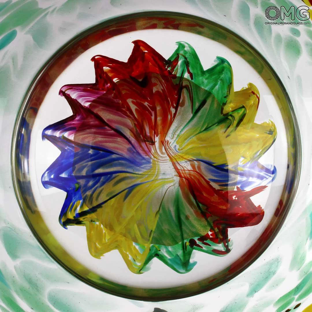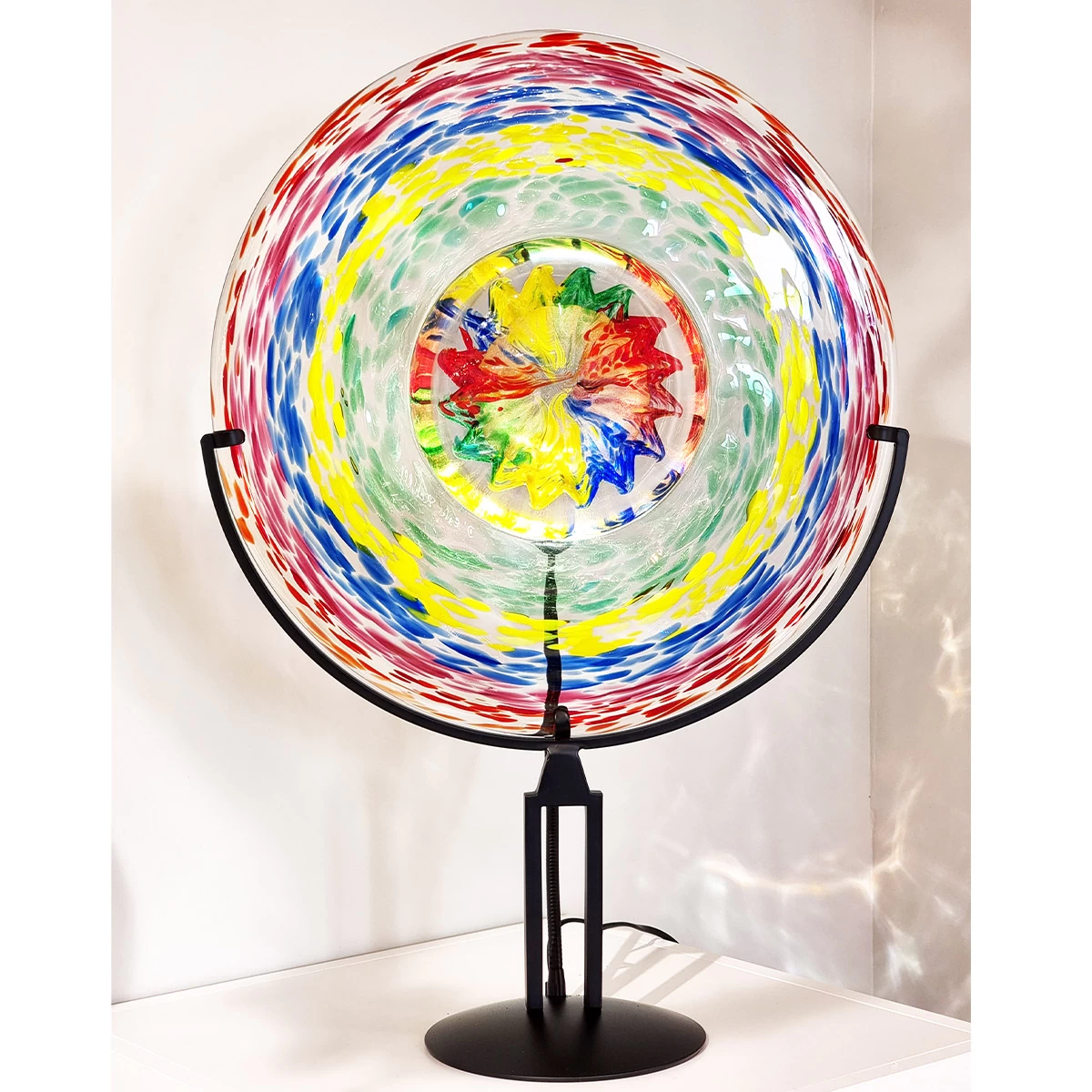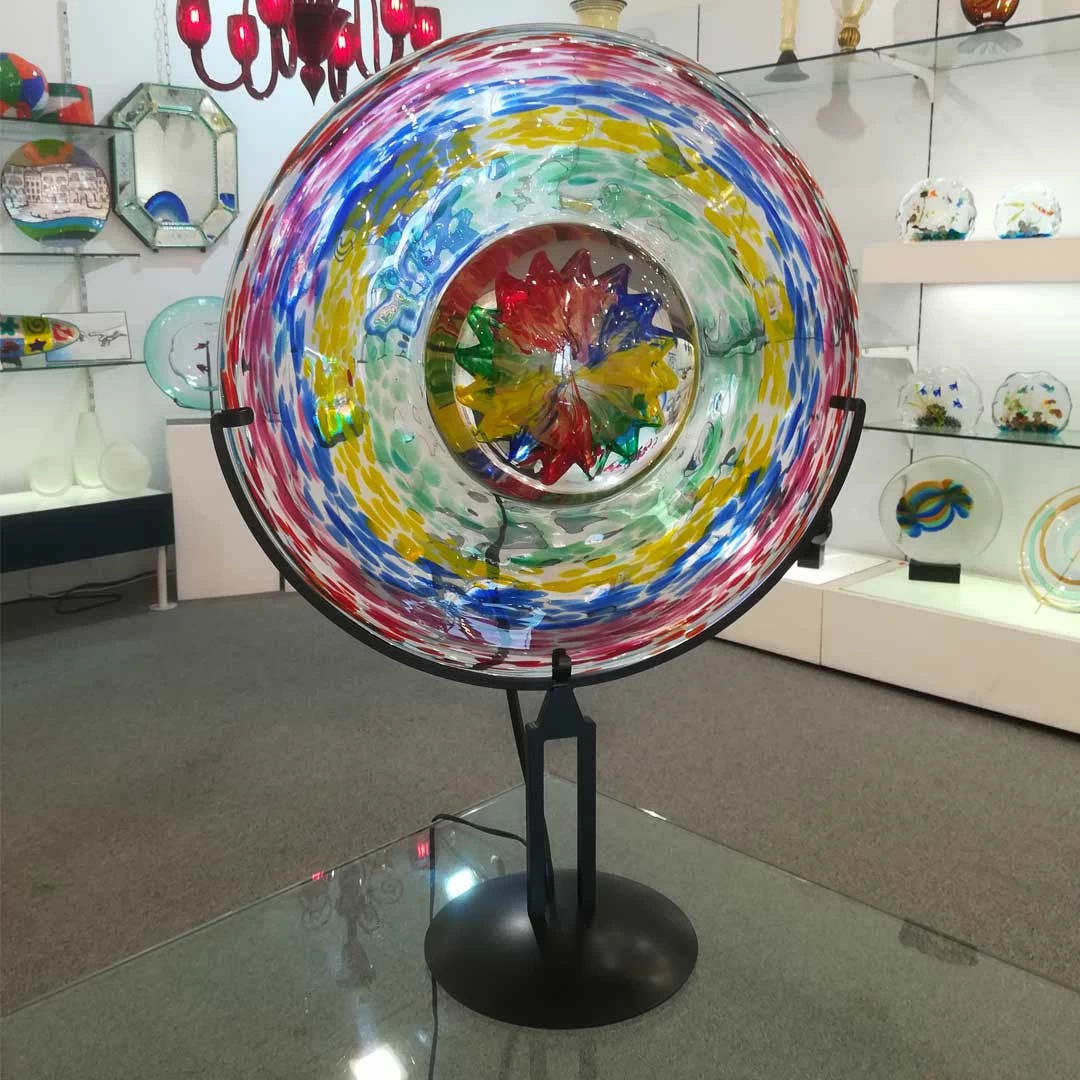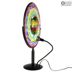 This stunning table disc lamp is handmade with submerged glass working technique. This kind of lamps available on our catalog represent what of best you can find about table lamps, thanks to its complex process of production.
