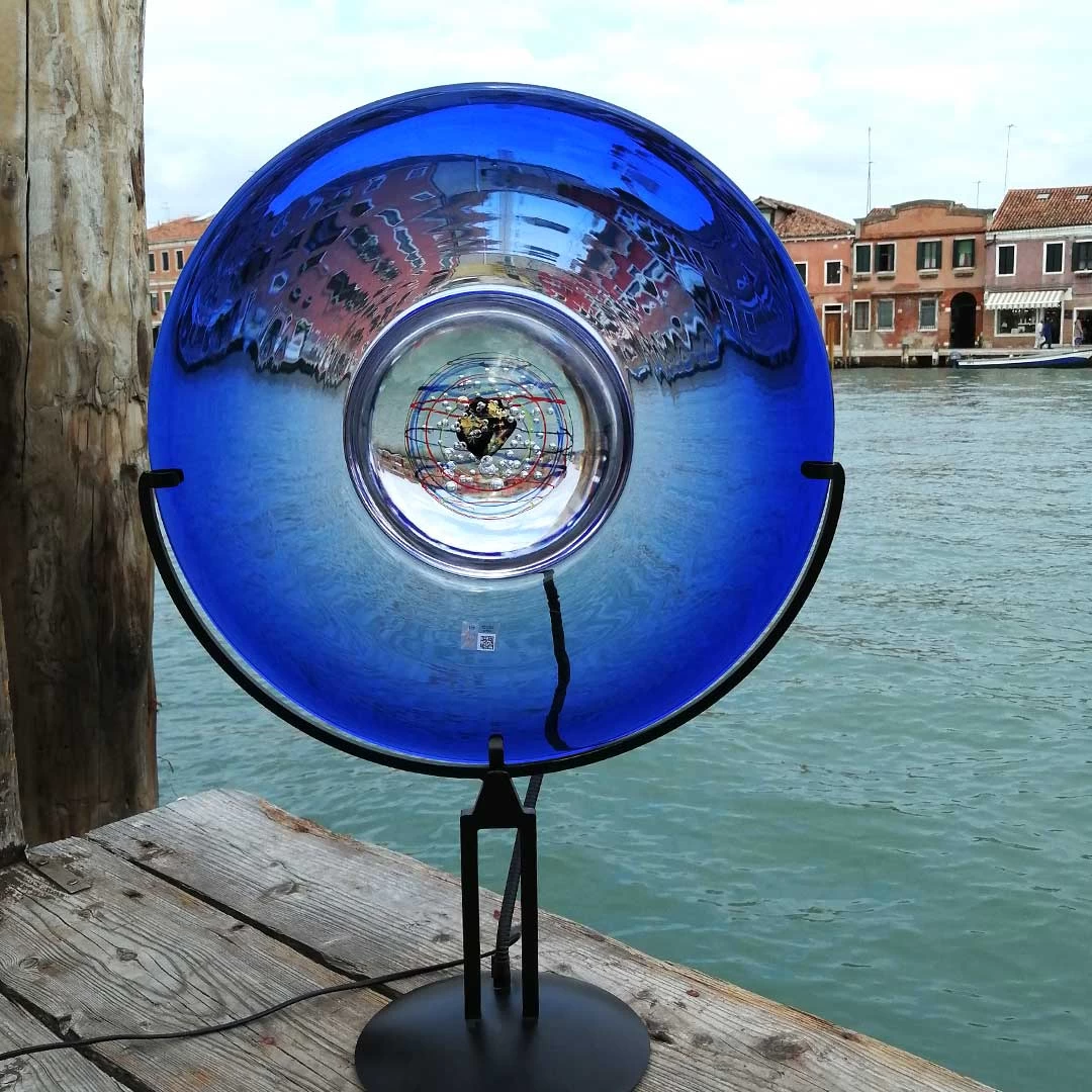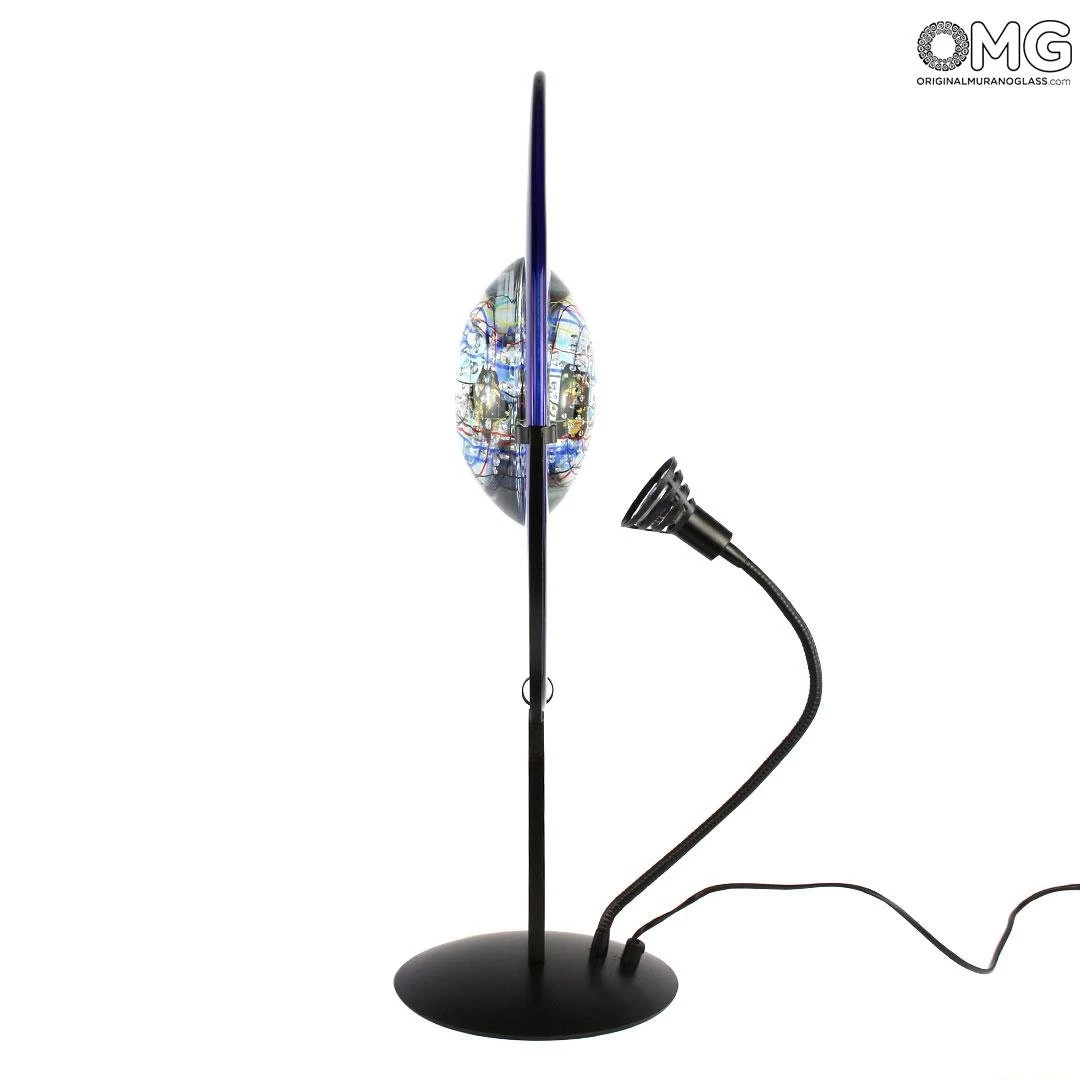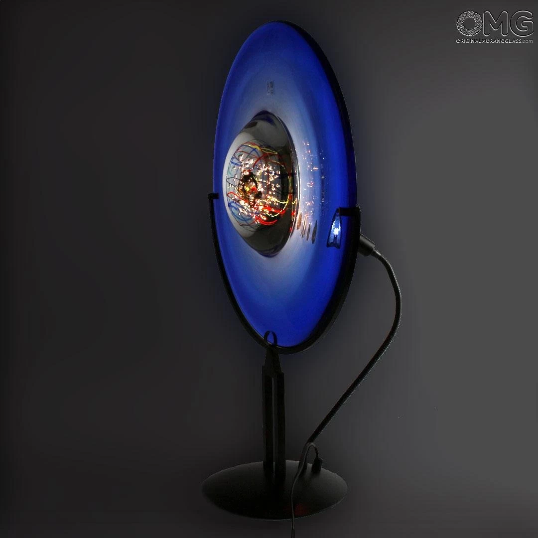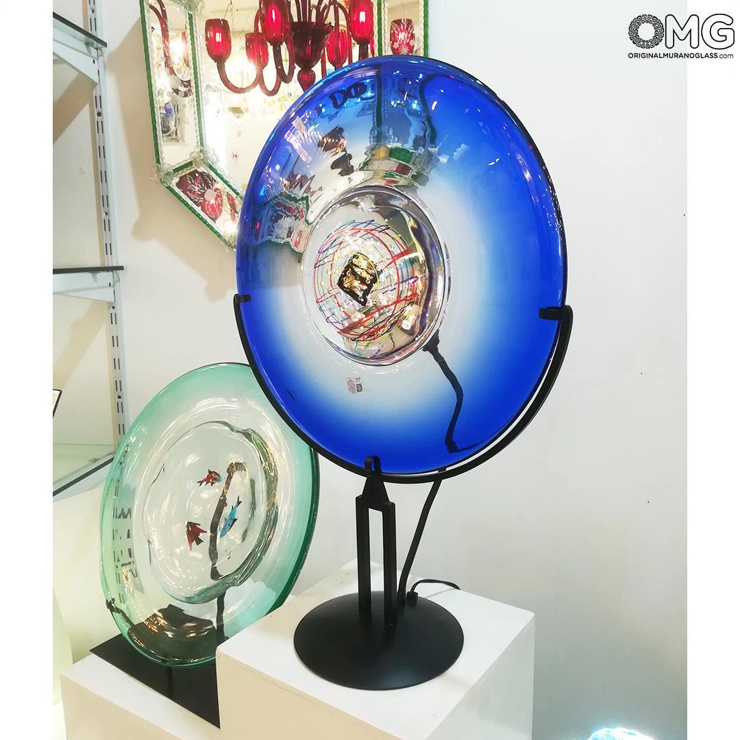 This stunning table disc lamp is handmade with submerged glass working technique. This kind of lamps available on our catalog represent what of best you can find about table lamps, thanks to its complex process of production.