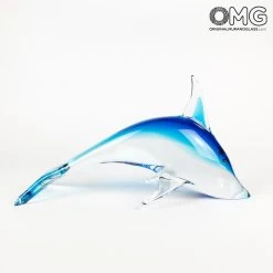 Precious figurine of a Dolphin available in different sizes. Scultpure handmade in Murano without stamp used, free hands only. So, each piece is unique, as an artwork. Perfect object to decore house in a marine style. Good for the living room as for a curated and elegant bathroom. A gift idea that will be apreciate not only from the animal’s lovers. Perfect for every type of furniture.