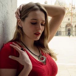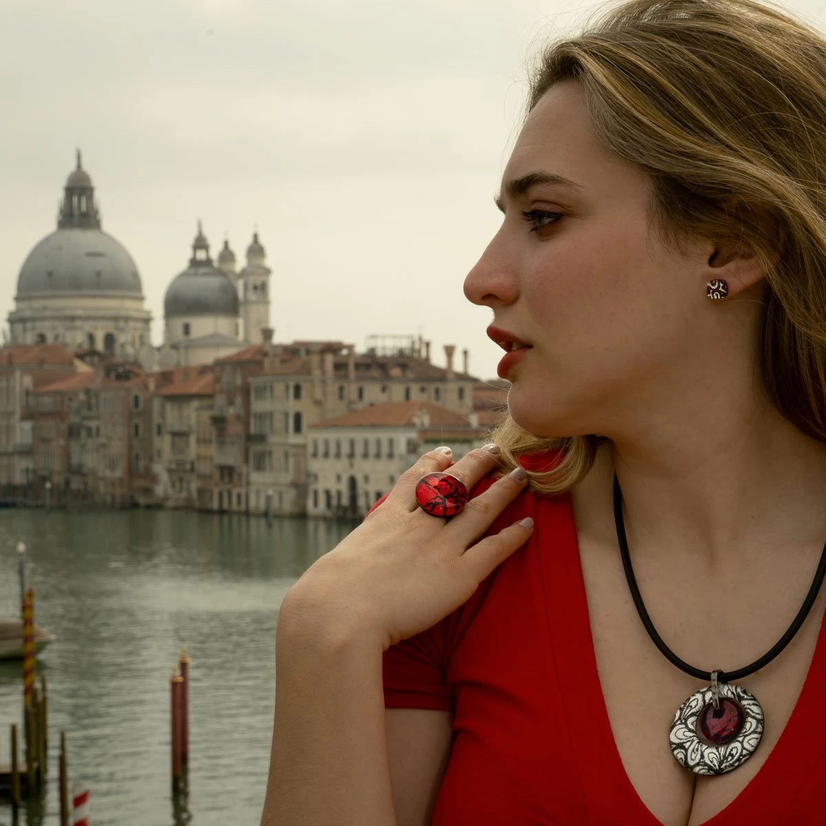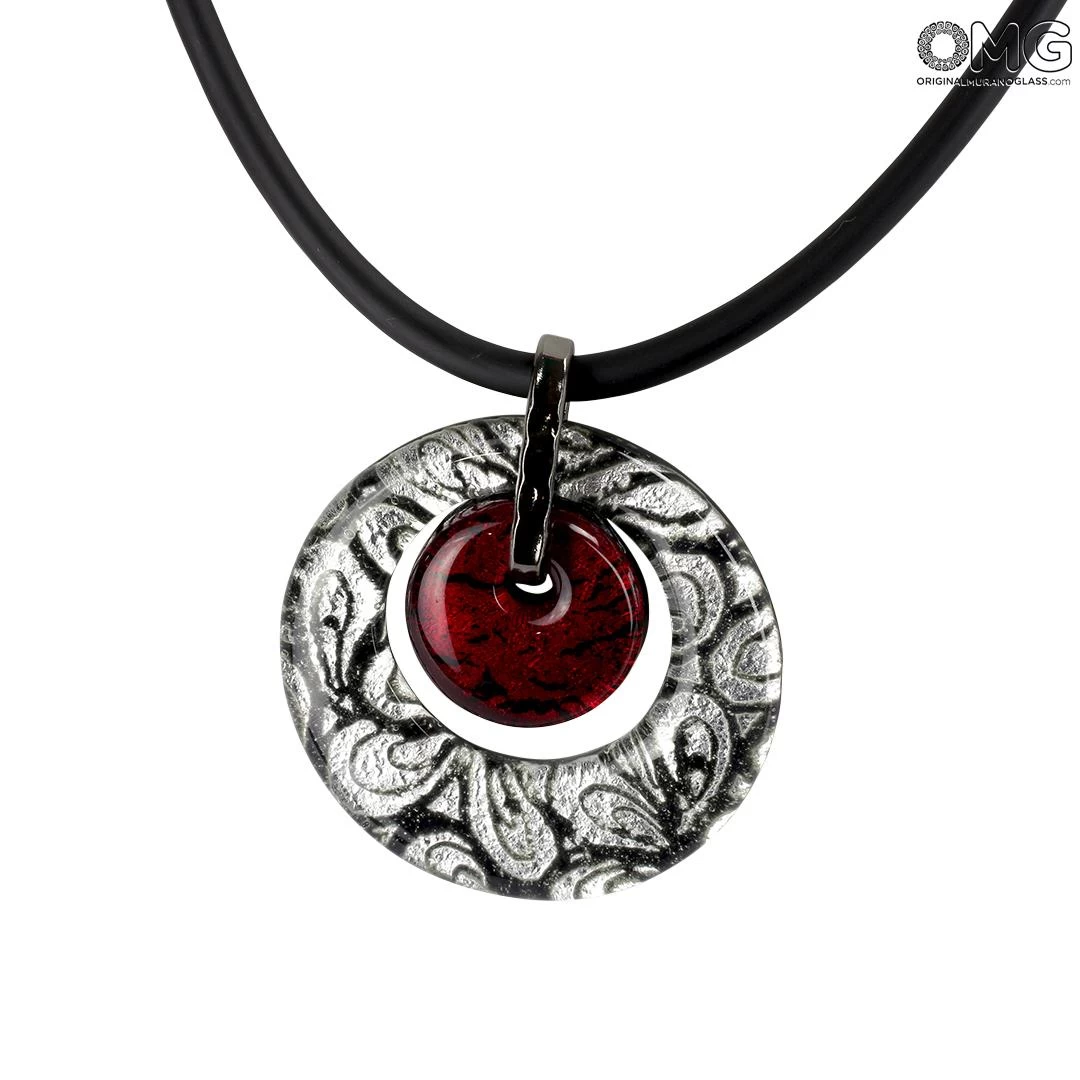 Pendant handmade in Murano glass with the technique of submerged glass over a silver leaf who make this pendant simple and easy to dress but unique in style.