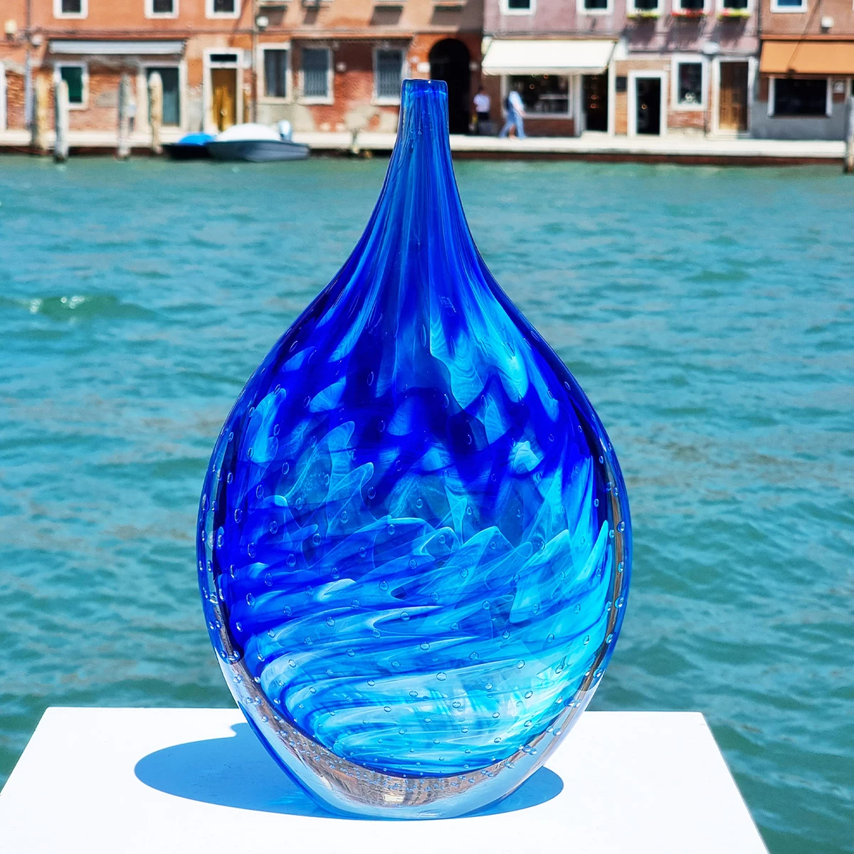 Handmade blown vase with a special texture. A colorfull vase perfect to decore during the spring time or to embellish table with white tablecloth or a light colored texture. A vase full of lively and bright color able to embellish the environment as it is.