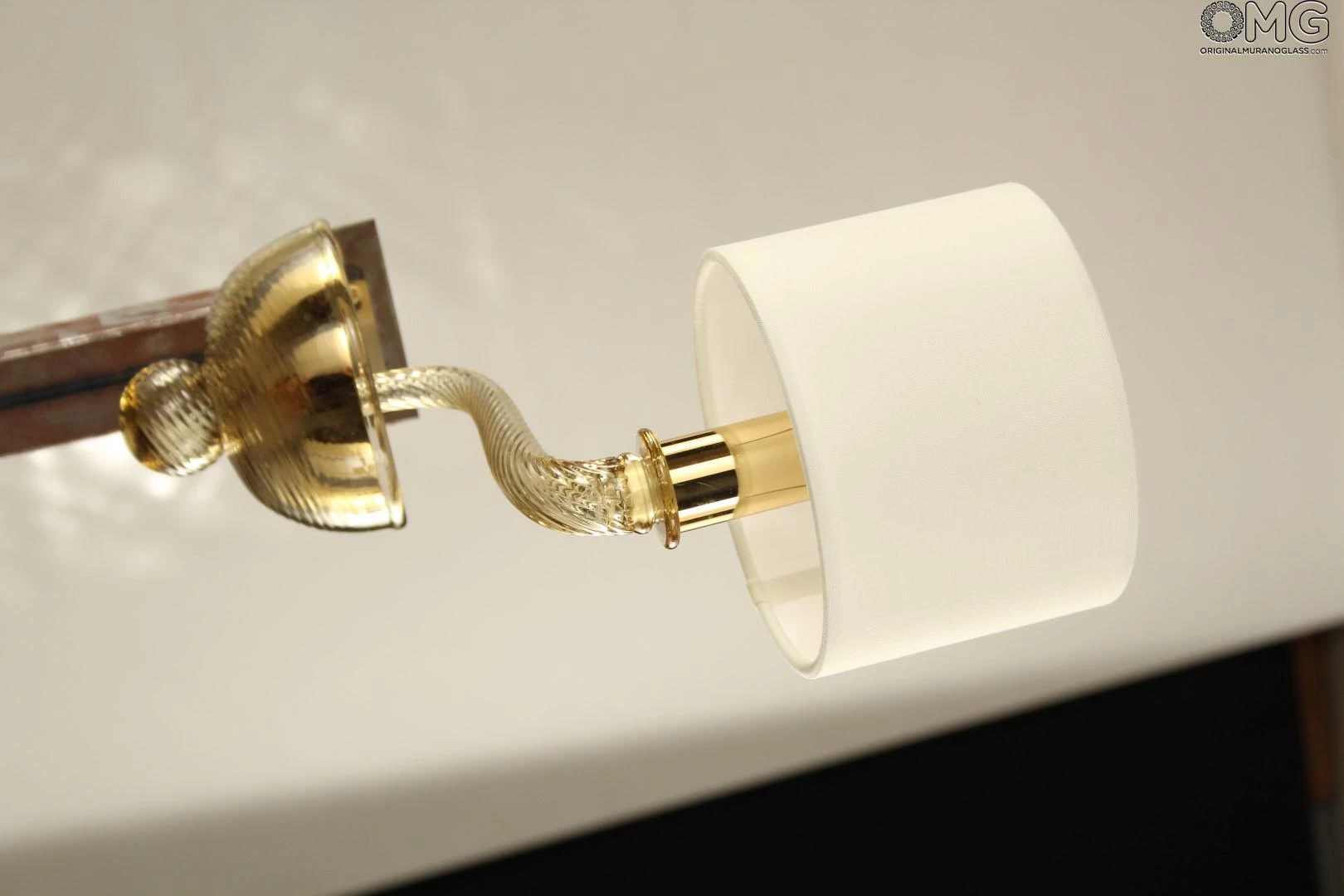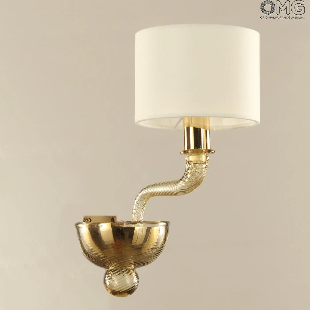 Luxury Wall lamp sconce in amber glass color striped-twisted with smooth lampshades and gold finitures.Â