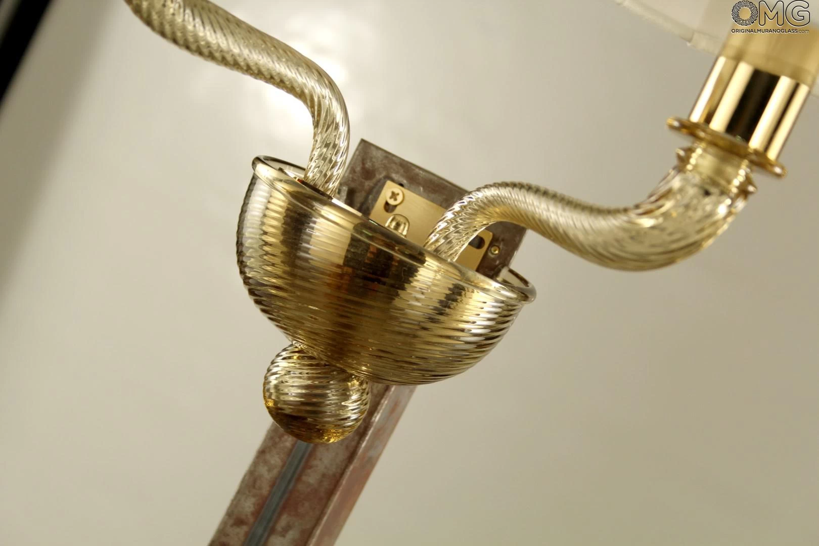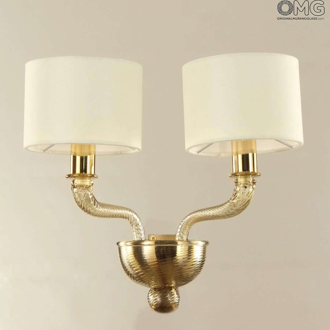 Luxury Wall lamp sconce in amber glass color striped-twisted with smooth lampshades and gold finitures.Â