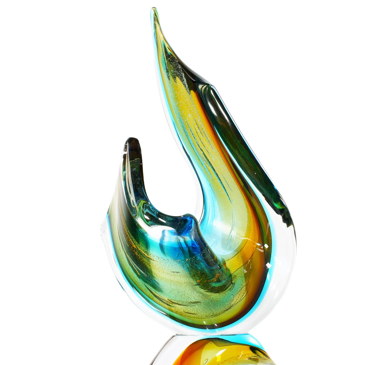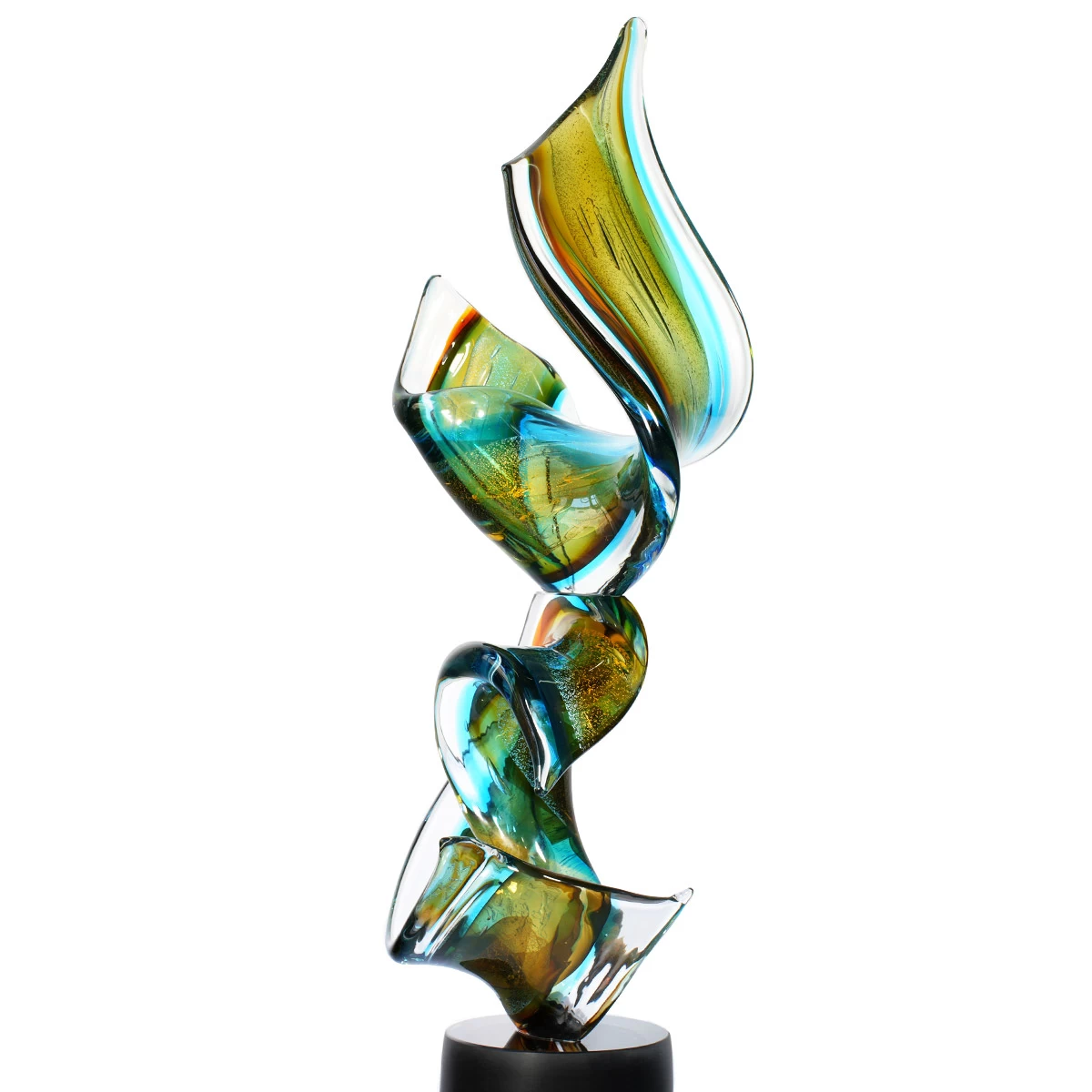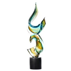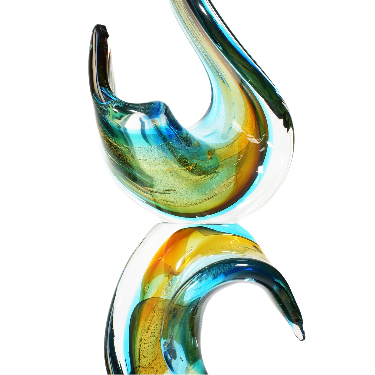 Colorfull Strip sculpture in multicolor glass gold leaf 24 kt hand-worked with black base. This big venetian glass sculpture impresses with its sinuous geometries and the liveliness of its colors. It lends itself perfectly to decorate various environments, from the living room to the study. It can be hosted on an important table or it can be comfortably placed on the ground to decorate the whole living room, hotel hall, office or any exclusive room space.