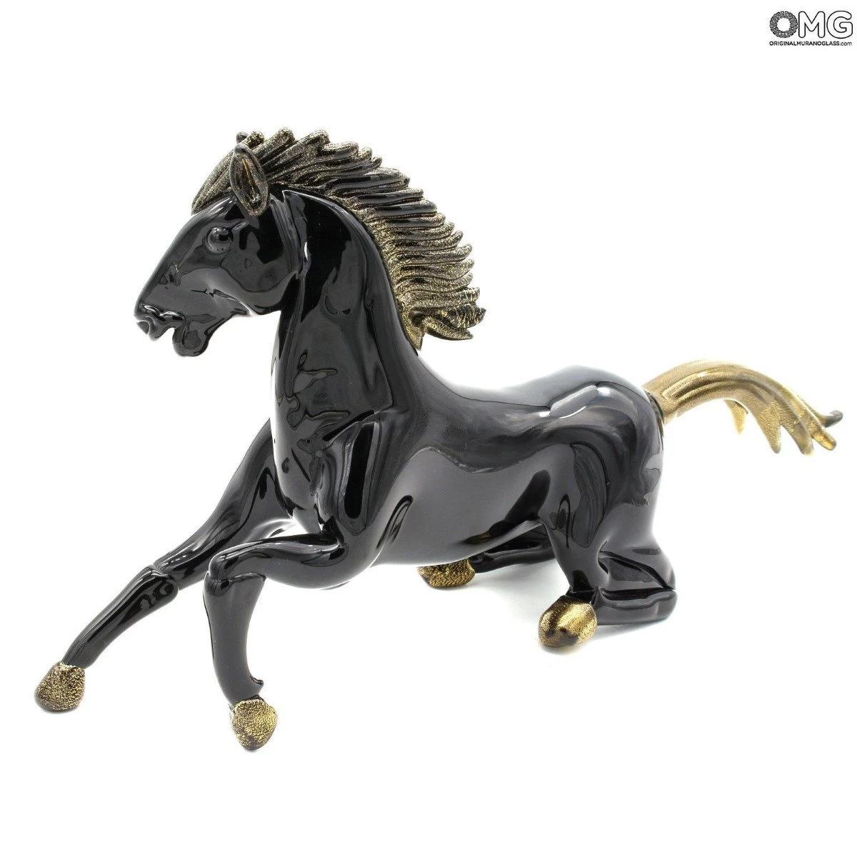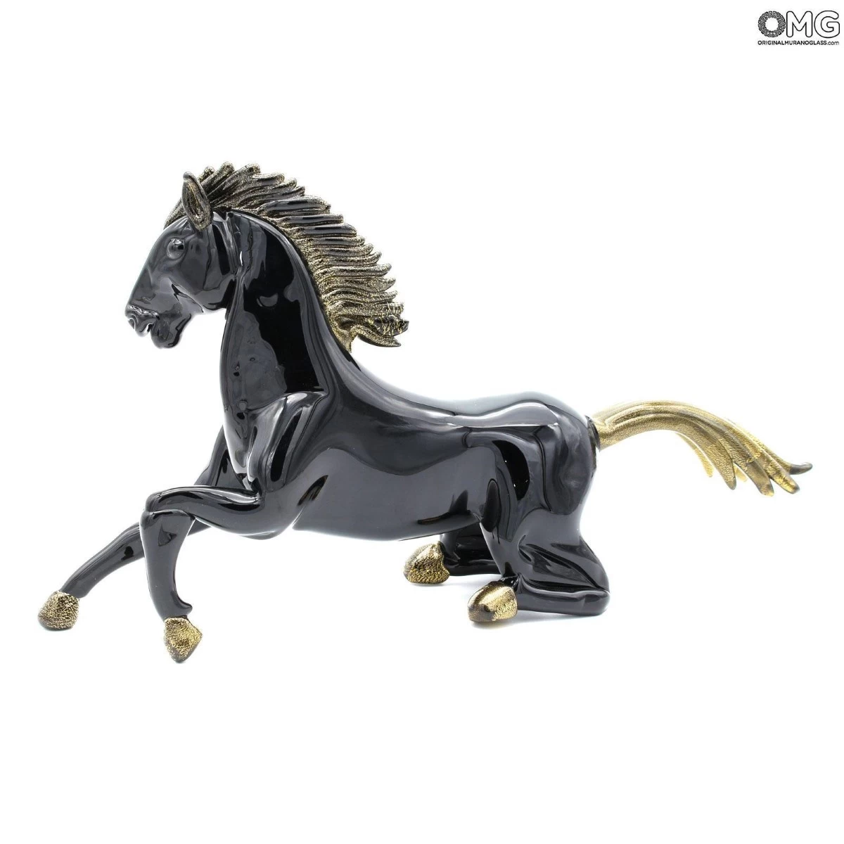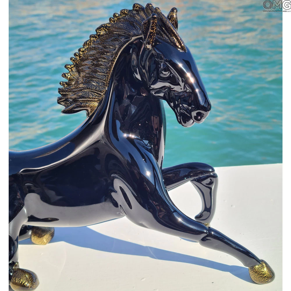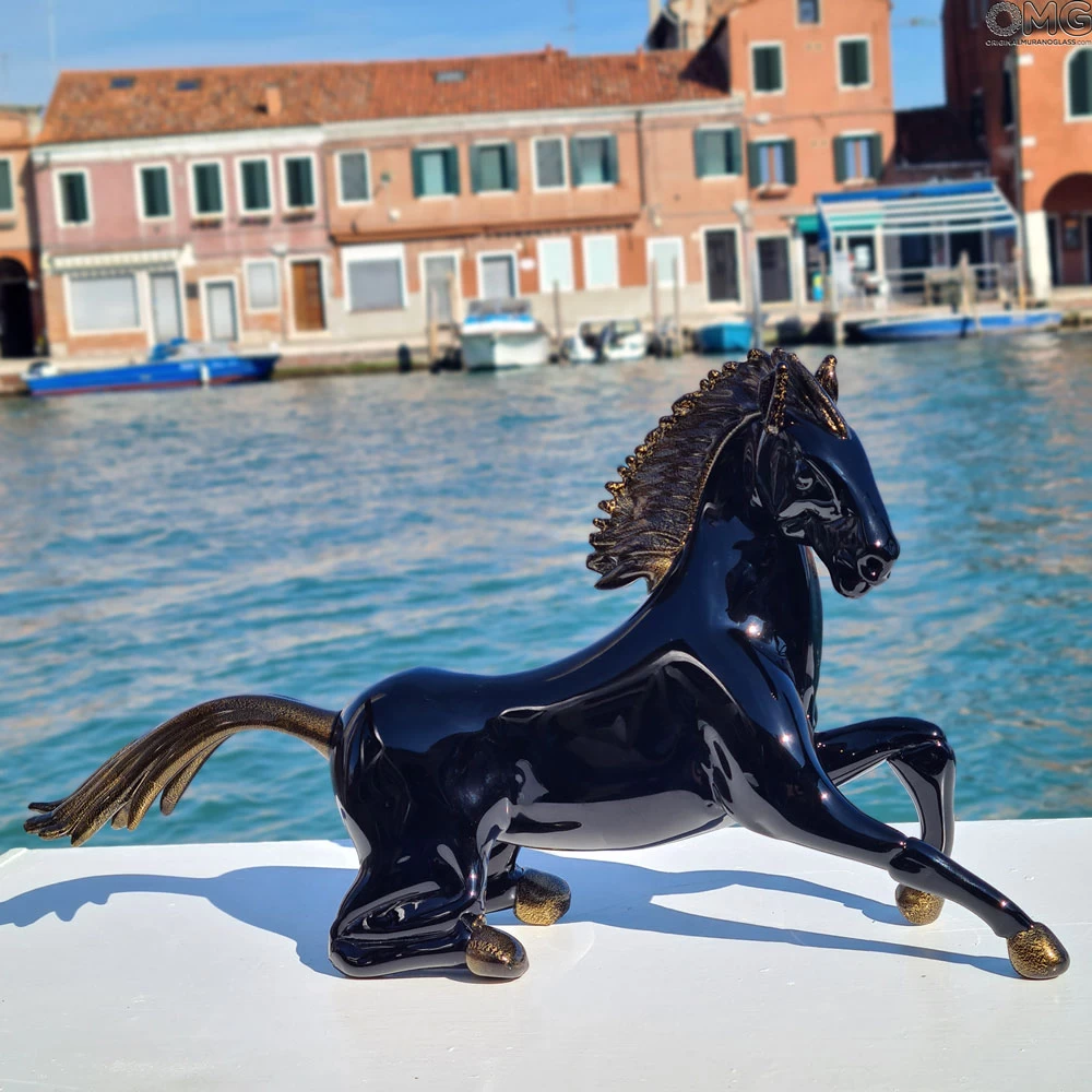 This is the classique Original Murano Glass artwork, the black horse, with pure gold 24 carats details. Luxury artwork perfect to use as award for competition but not only.