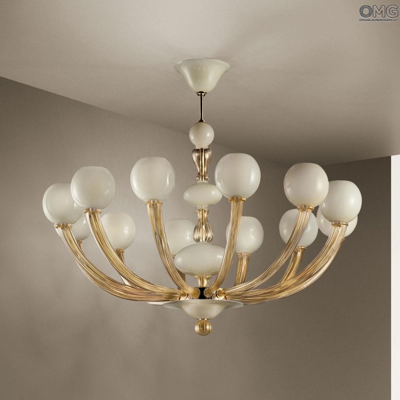Venetian Chandelier handmade according with the old Murano glass tradition, handcrafted in blown glass.