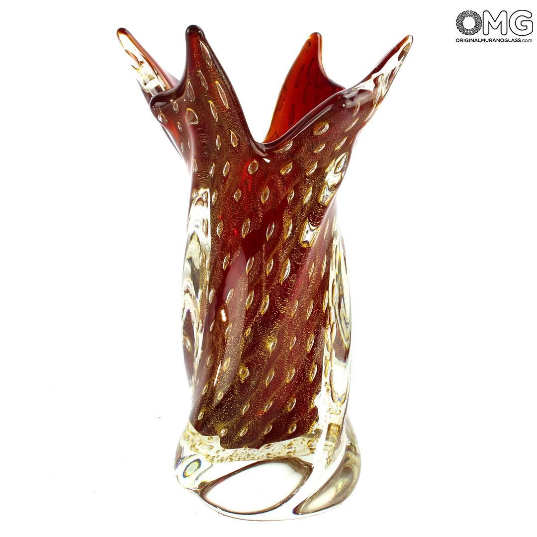 The “bullicante” effect is obtained by incorporating several layers of small bubbles into the glass and pure gold 24kt. This kind of chessboard pattern gives great dynamism and depth to the object.