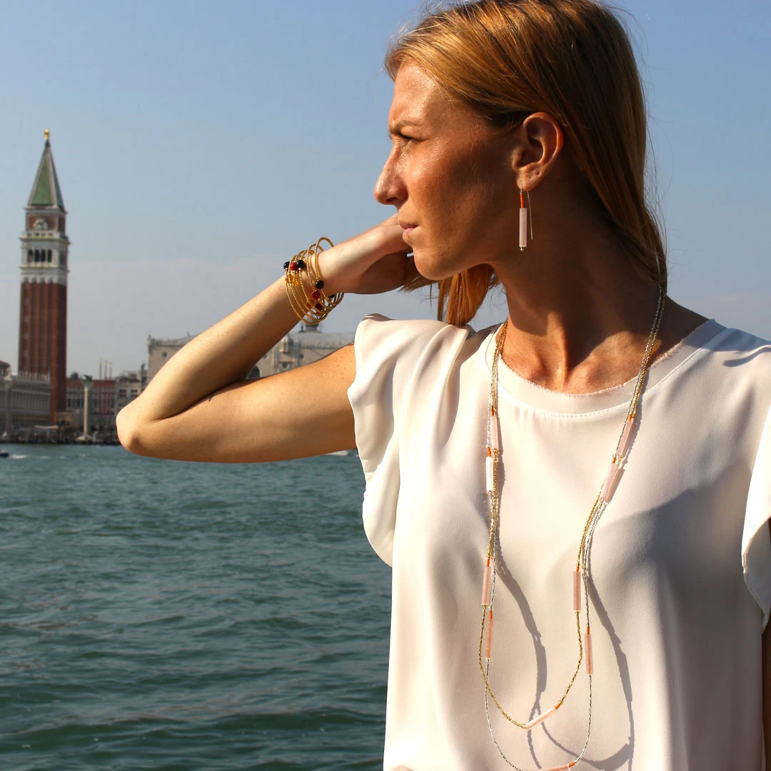 The beads and pendants are made with Murano glass in cane made in Murano, 24k gold leaf, white gold leaf and silver leaf of Italian origin.