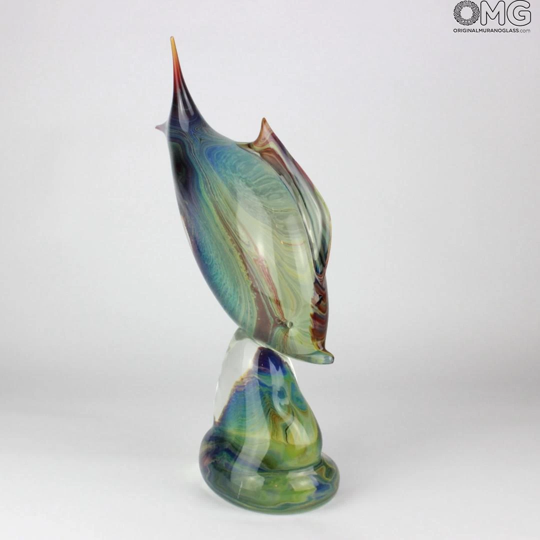 Fish sculpture handmade with the technique of warm glass modellation and glass crystal  decoration.