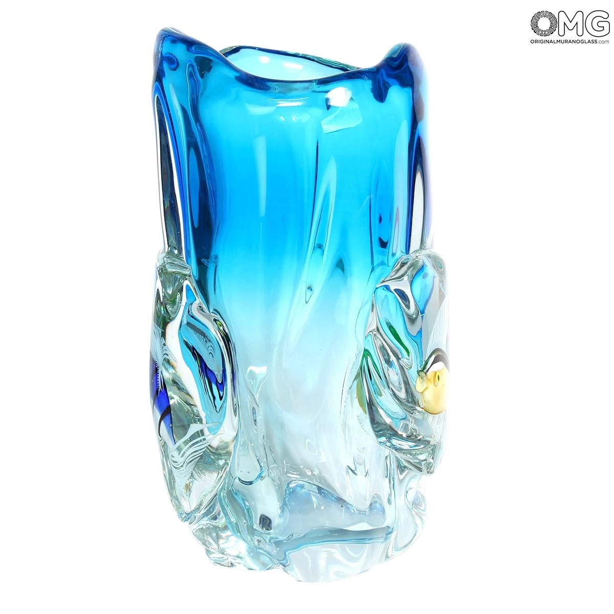 The particular shape of the vase remember the waves and the sea, it is carried out by the master glassmaker in a masterly way to create a work of art of easy appreciation but of great scenic impact, ideal for embellishing any environment.