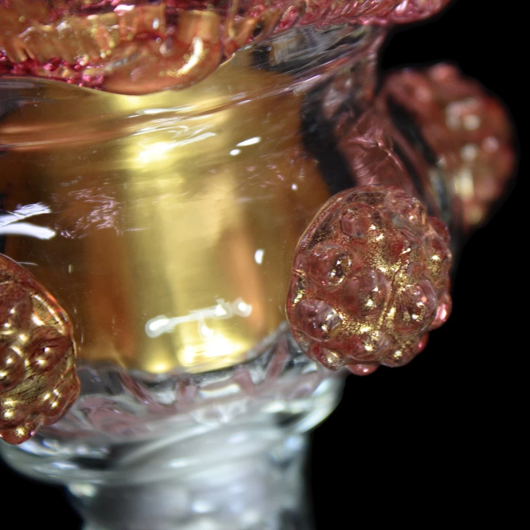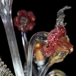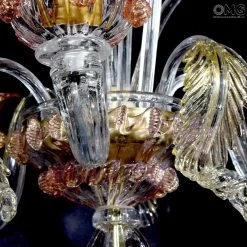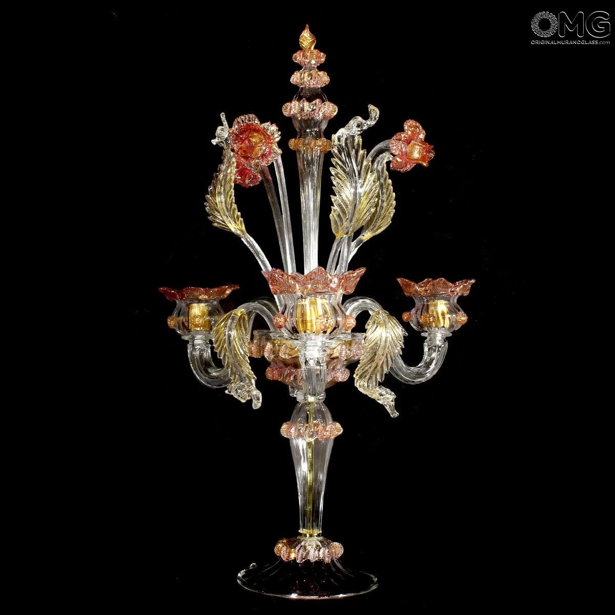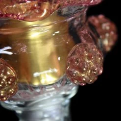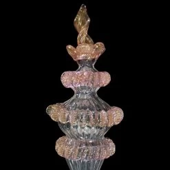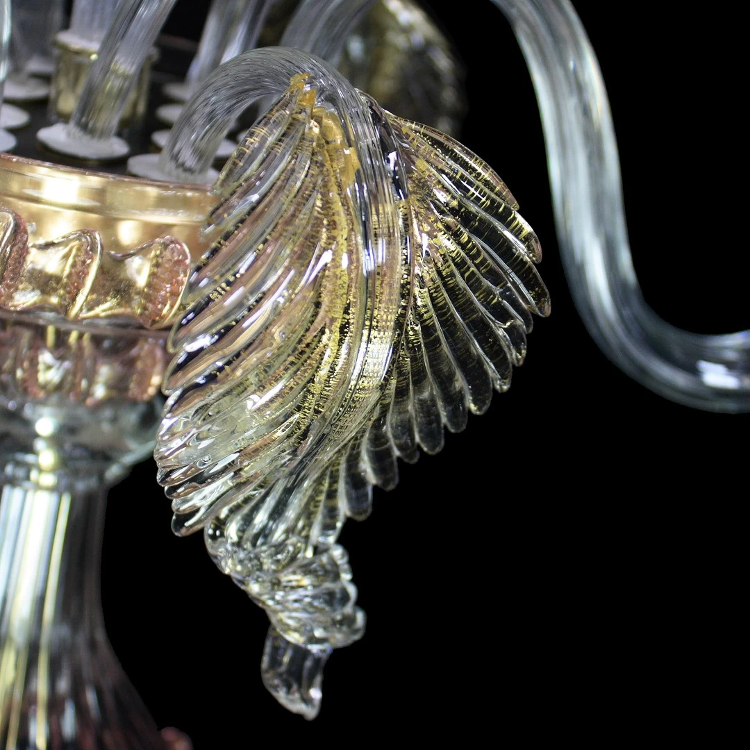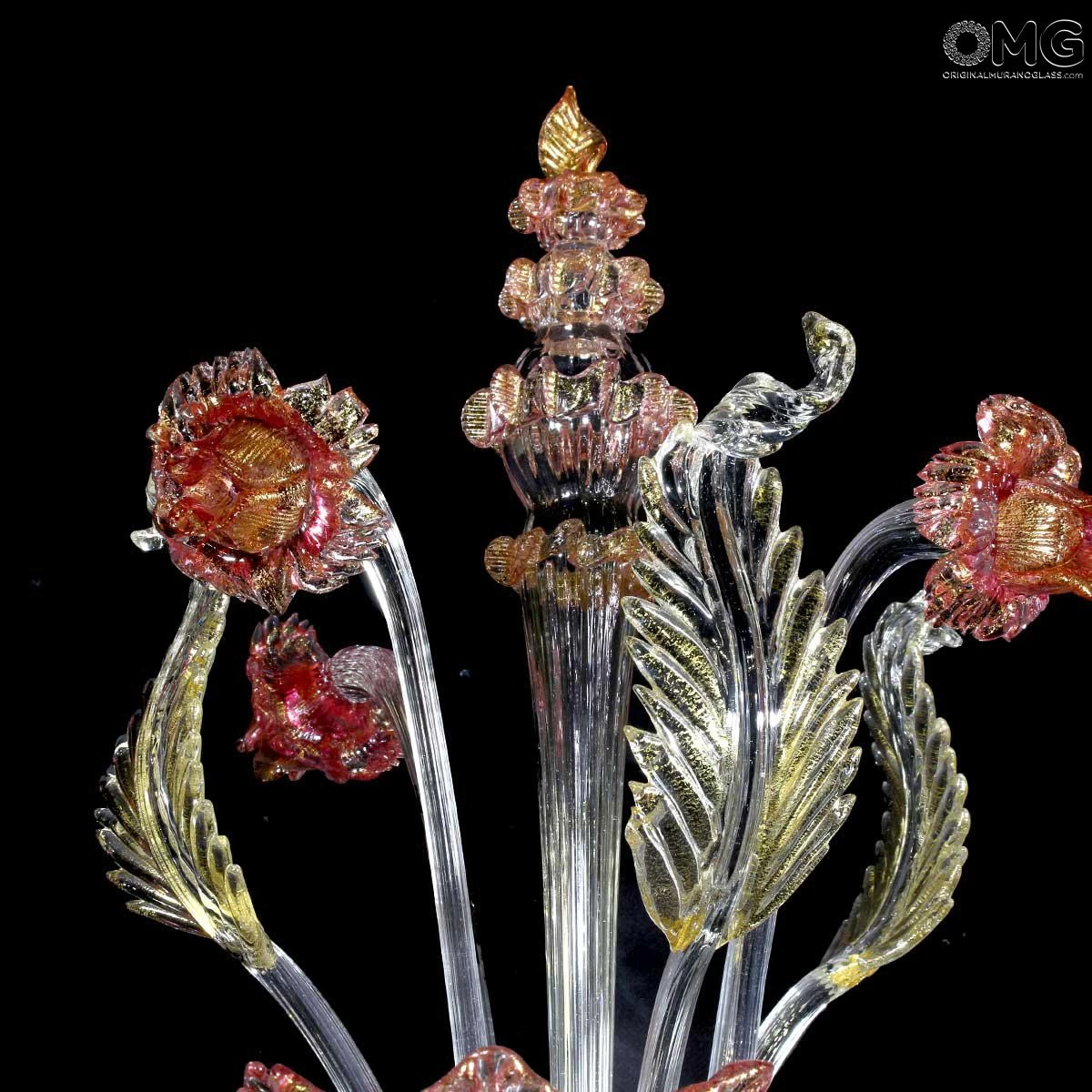 Flambeau 3 lights, Venetian glass transparent with pink trim and gold. Flambeau handmade according with the old Murano glass tradition, handcrafted in blown glass.Â