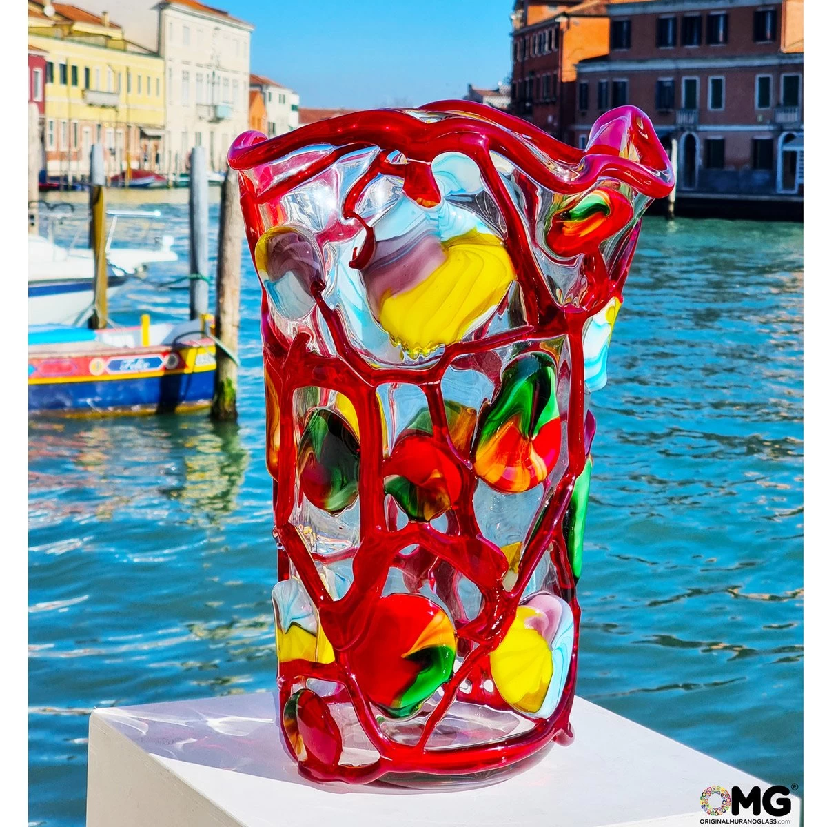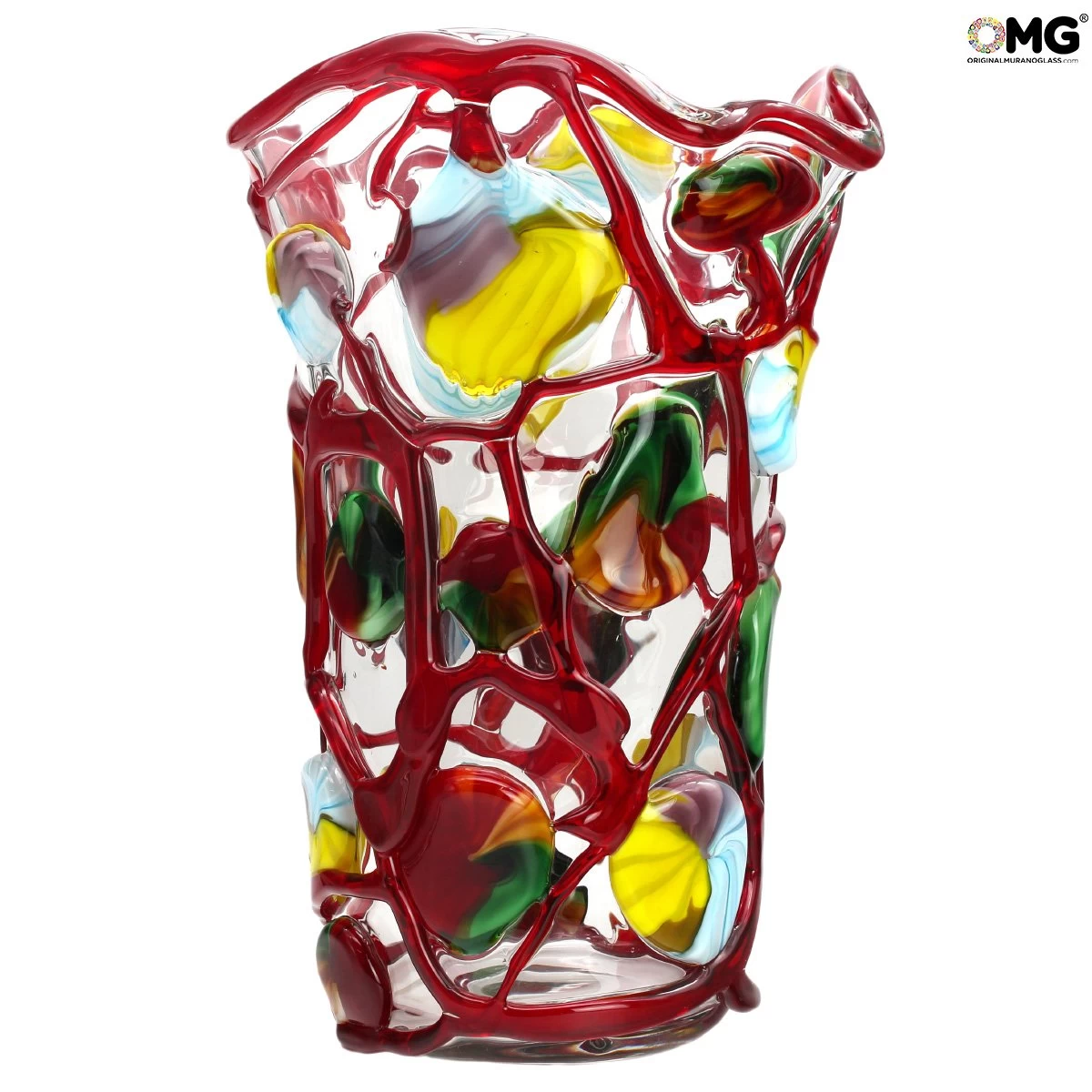 The particular wavy texture and the alternation of colors were carried out by the master glassmaker in a masterly way to create a work of art of easy appreciation but of great scenic impact, ideal for embellishing any environment.