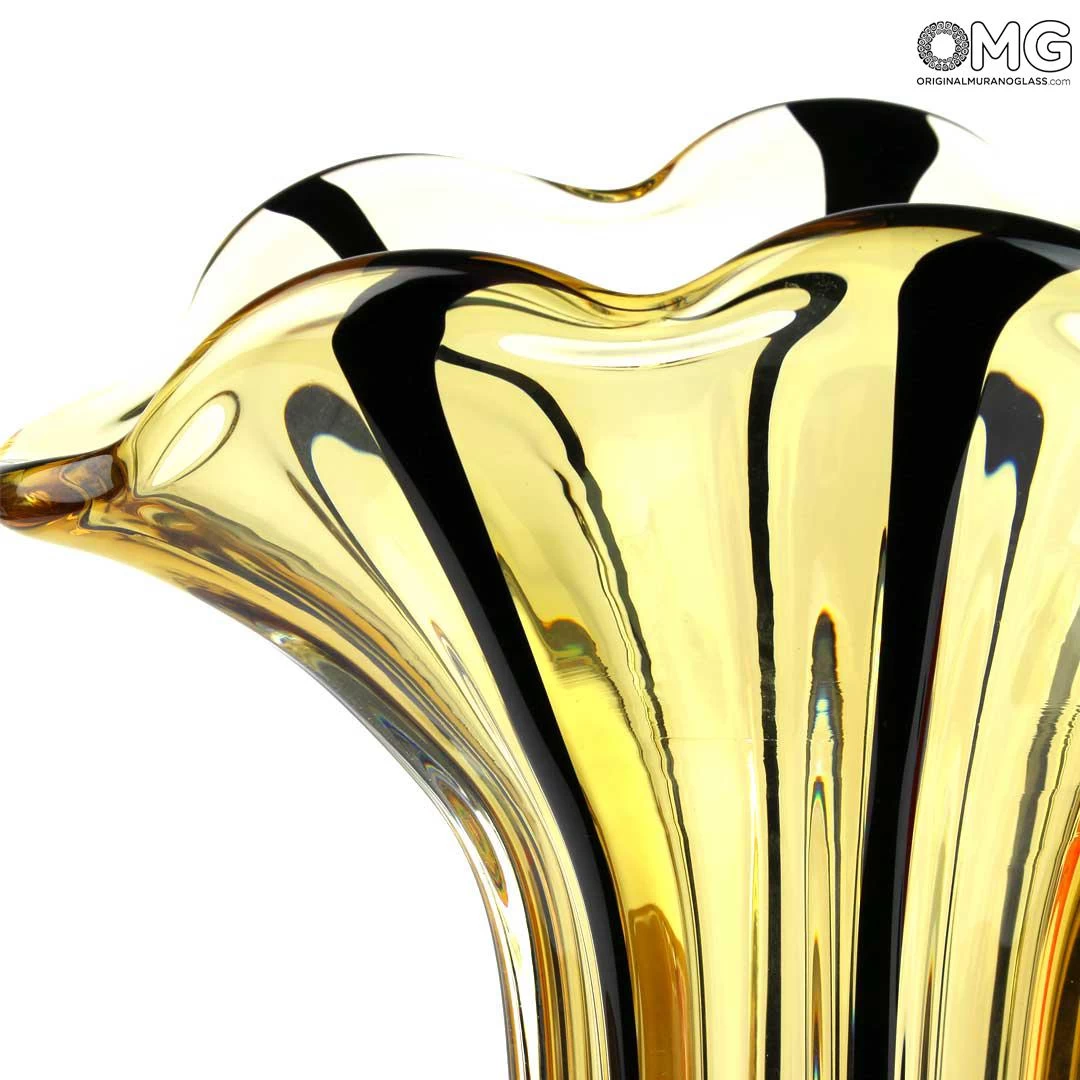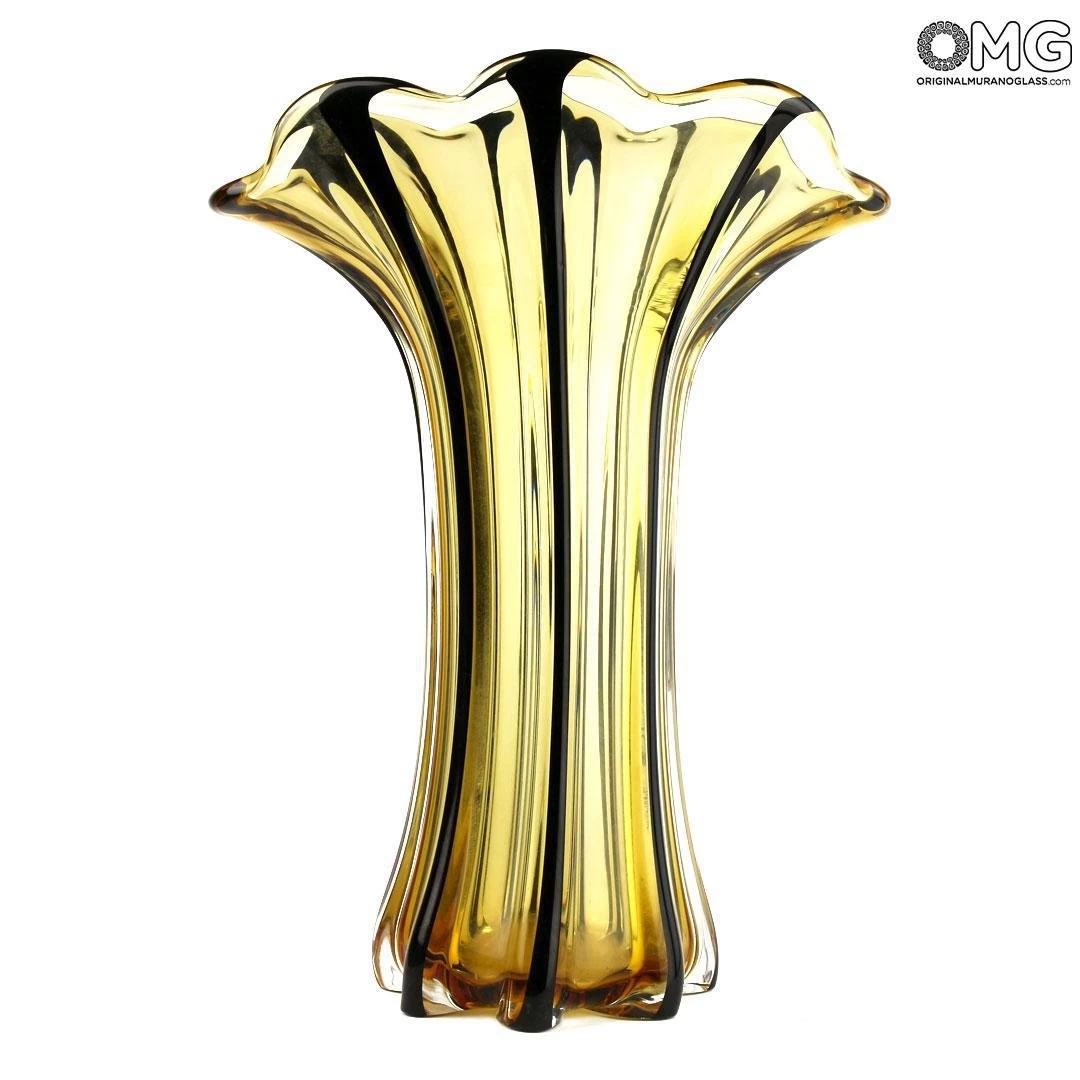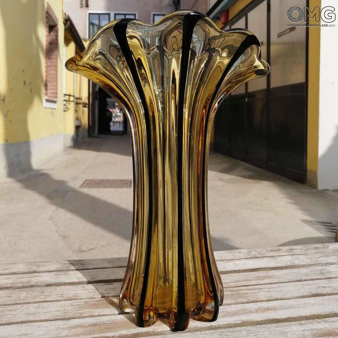 Luxury handmade vase with the famouse blowing technique, realized in Murano amber Glass.