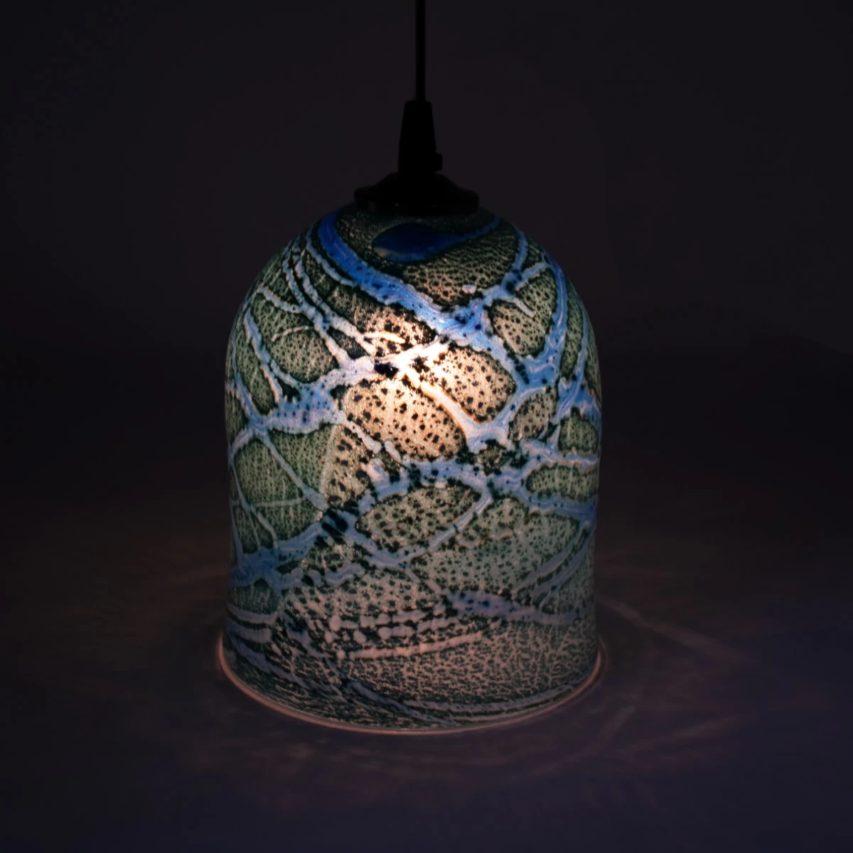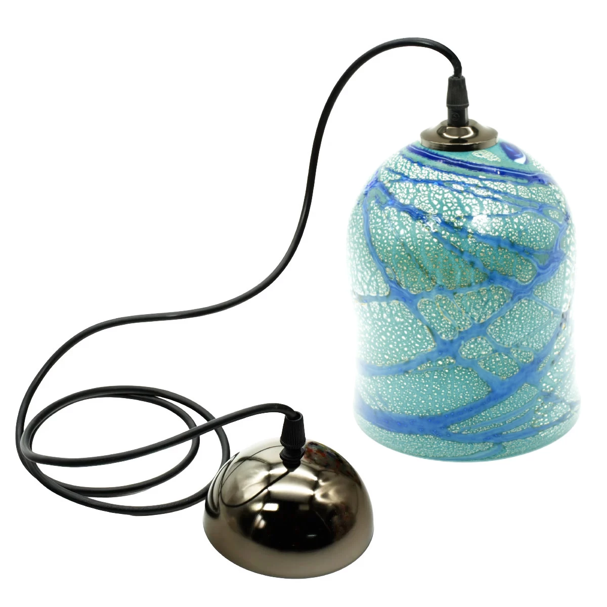 Suspension hanging lamp hand made and blown with real silver leaf.