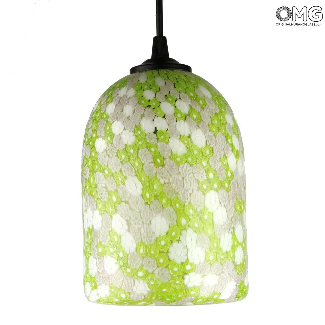 Suspension hanging lamp hand made and blown with millefiori murrine.