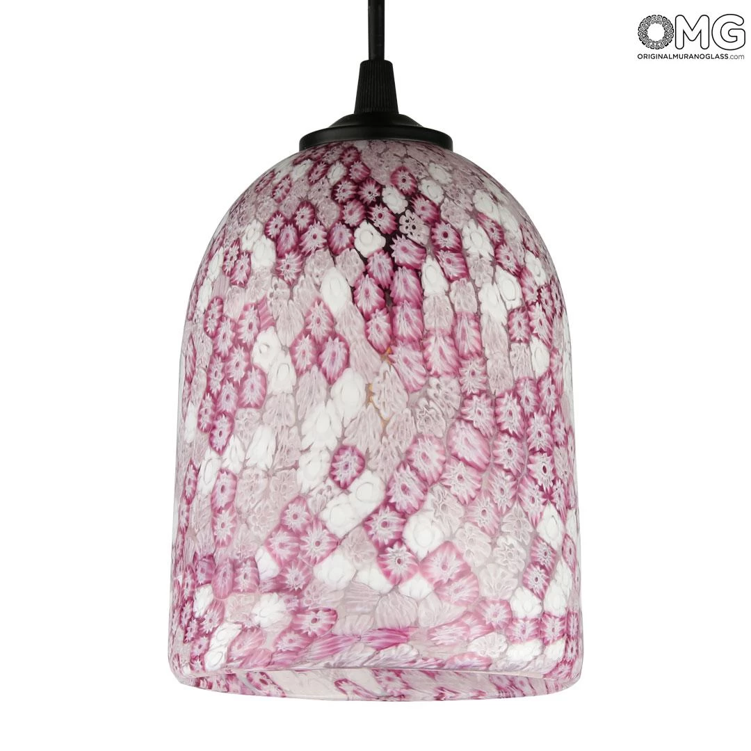 Suspension hanging lamp hand made and blown with millefiori murrine.