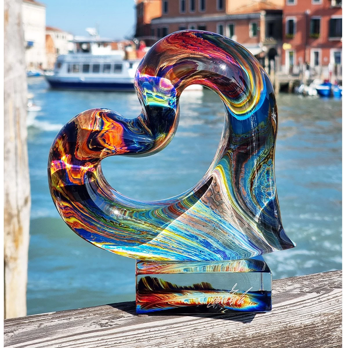 Exclusive and unique glass artwork handmade in clear glass and , realized in free hand. The sculpture is polished and cold glass cut by sandstone.