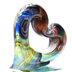 Note the surreal color effects that are constantly changing when the observer moves, making the work alive and moving, with different shades of blue, amber, veins and shades of red.